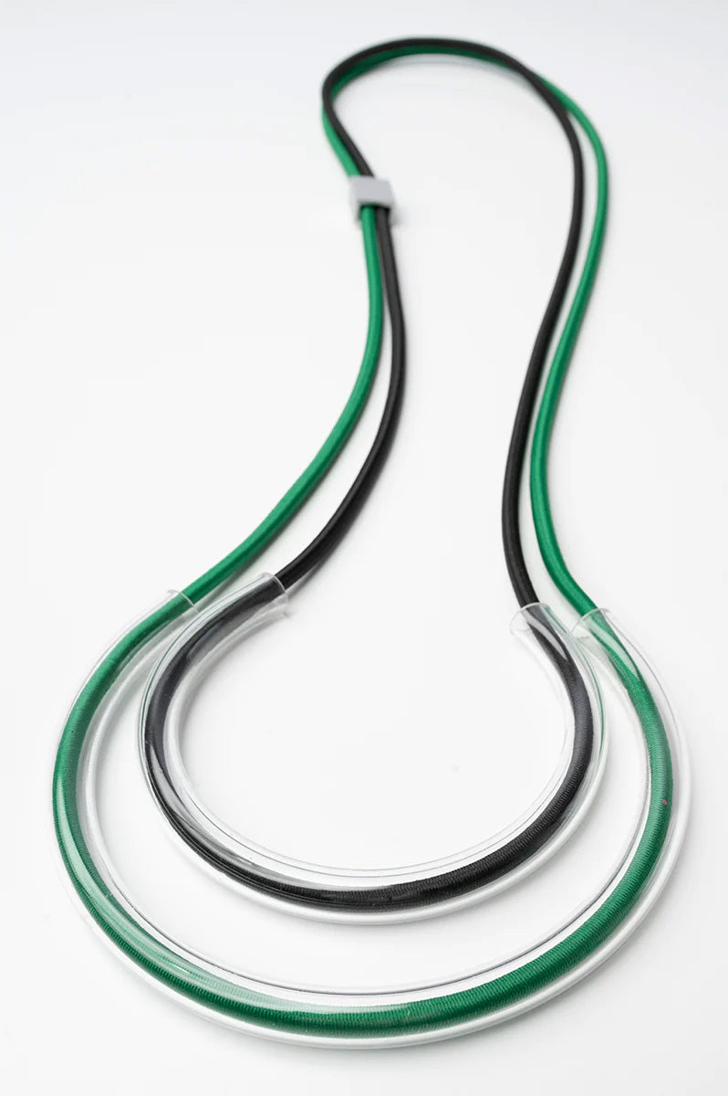 CHRISTINA BRAMPTI Long Double Cord Necklace in Green