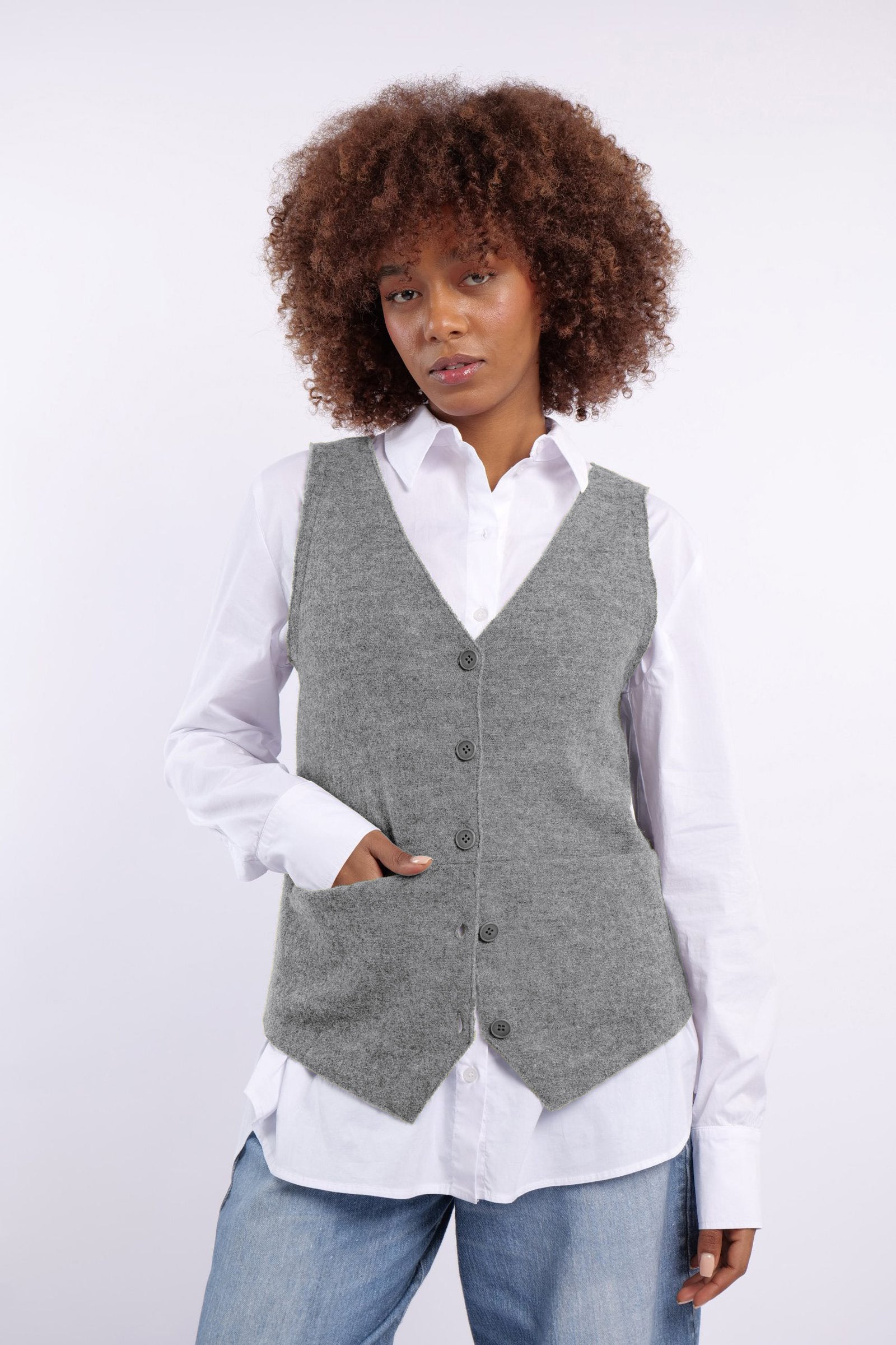 ELEMENTE CLEMENTE Wool Pocketed Vest in Anthra