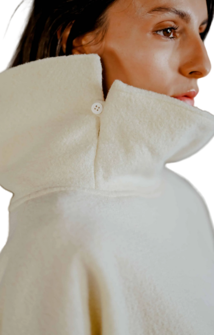 ELEMENTE CLEMENTE Boiled Wool Asymmetric Collar Pullover in Deep Sapphire