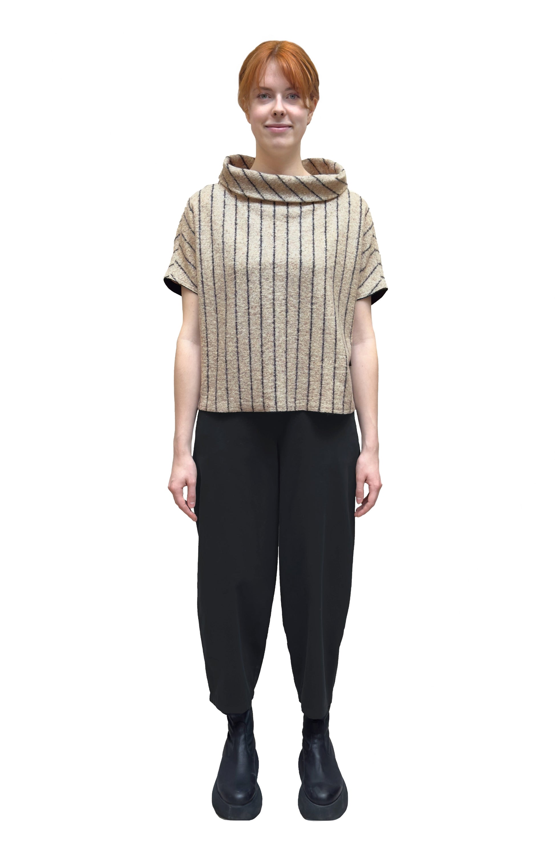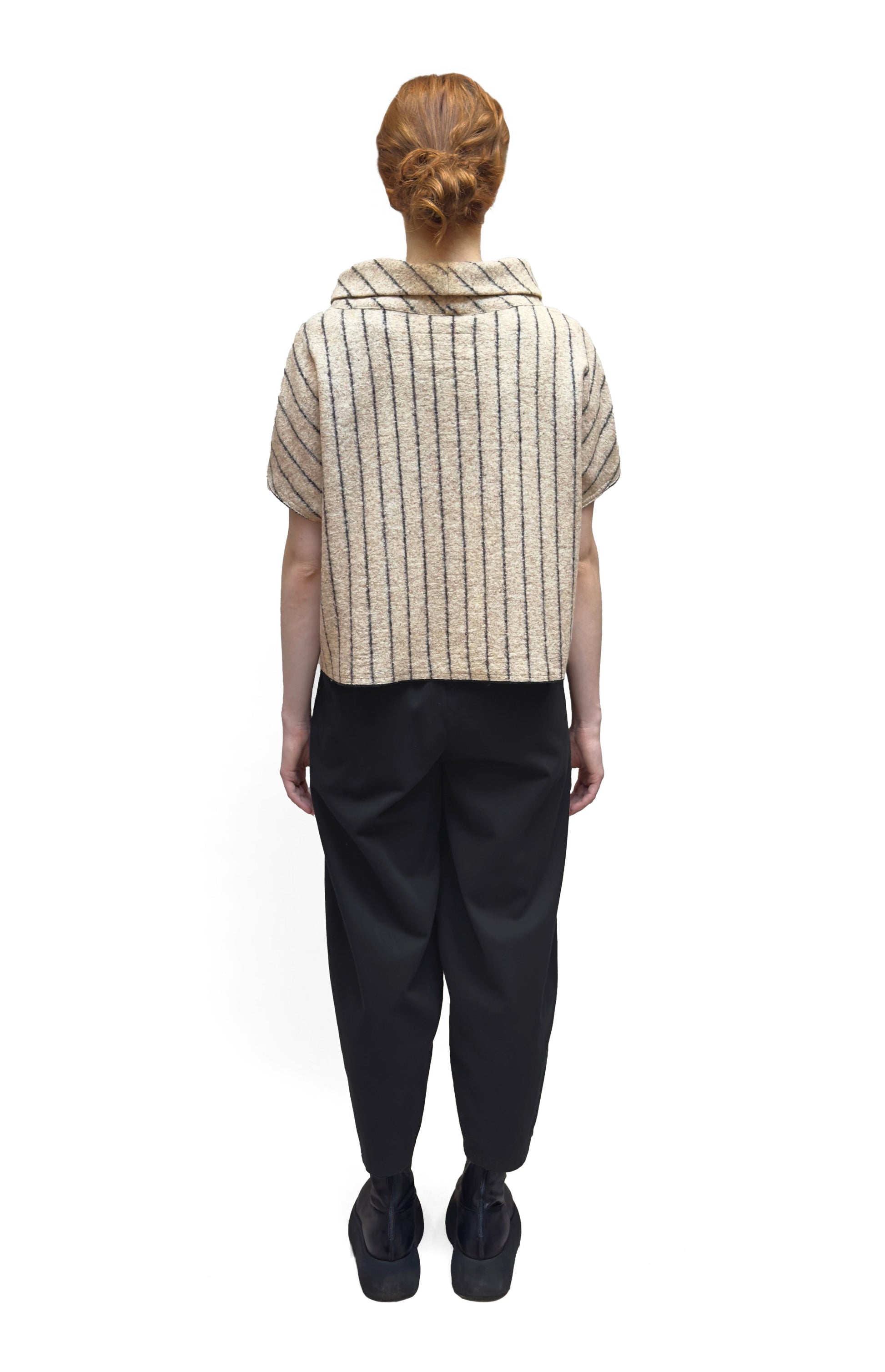 This pullover is constructed from a blend of boiled wool and silk, its boxy fit, short dropped sleeves, and turtleneck design make it a classic style to layer over any outfit. This pullover falls at the upper hips.