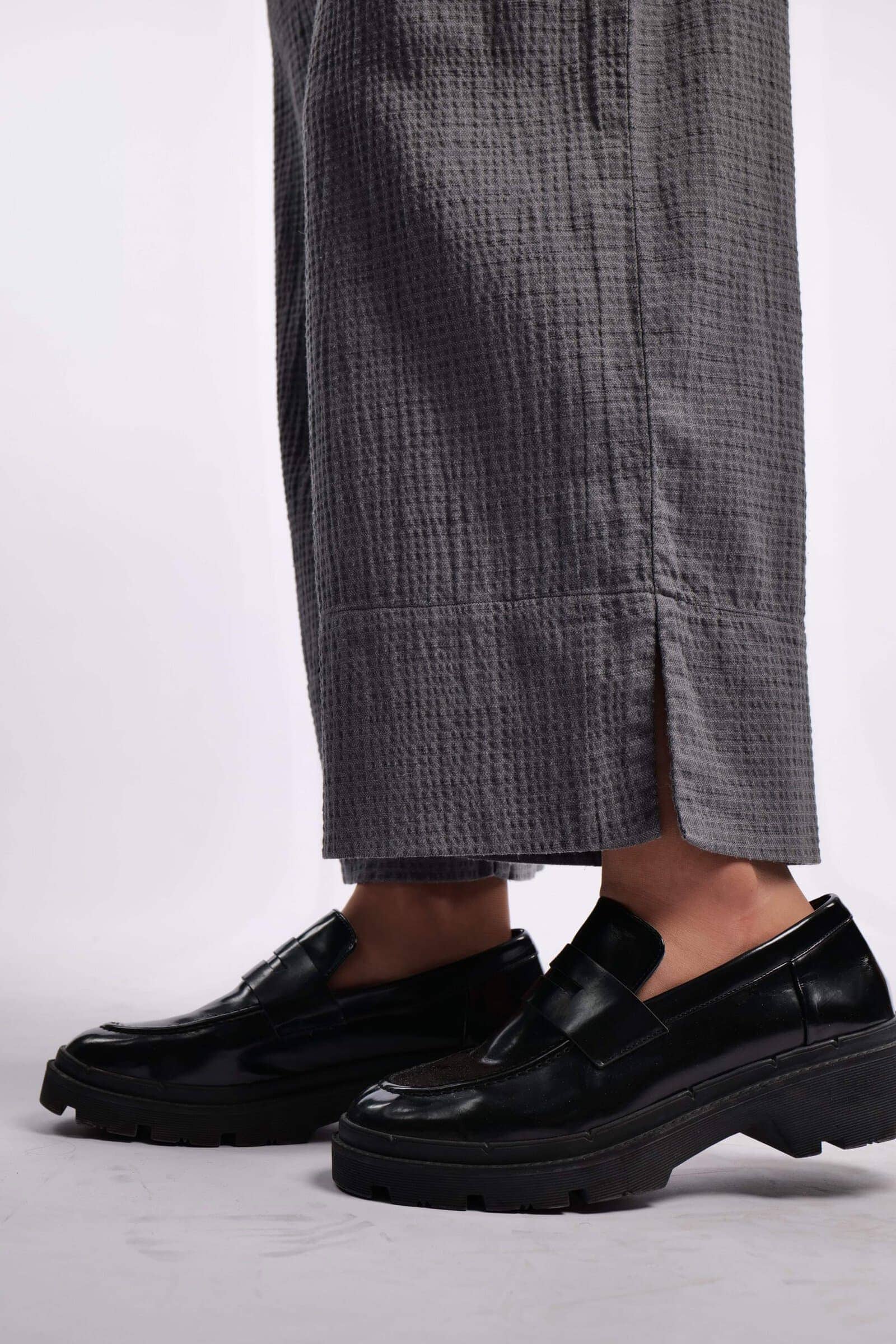 ELEMENTE CLEMENTE Small Waffle Check Wide Leg Pant in Anthra