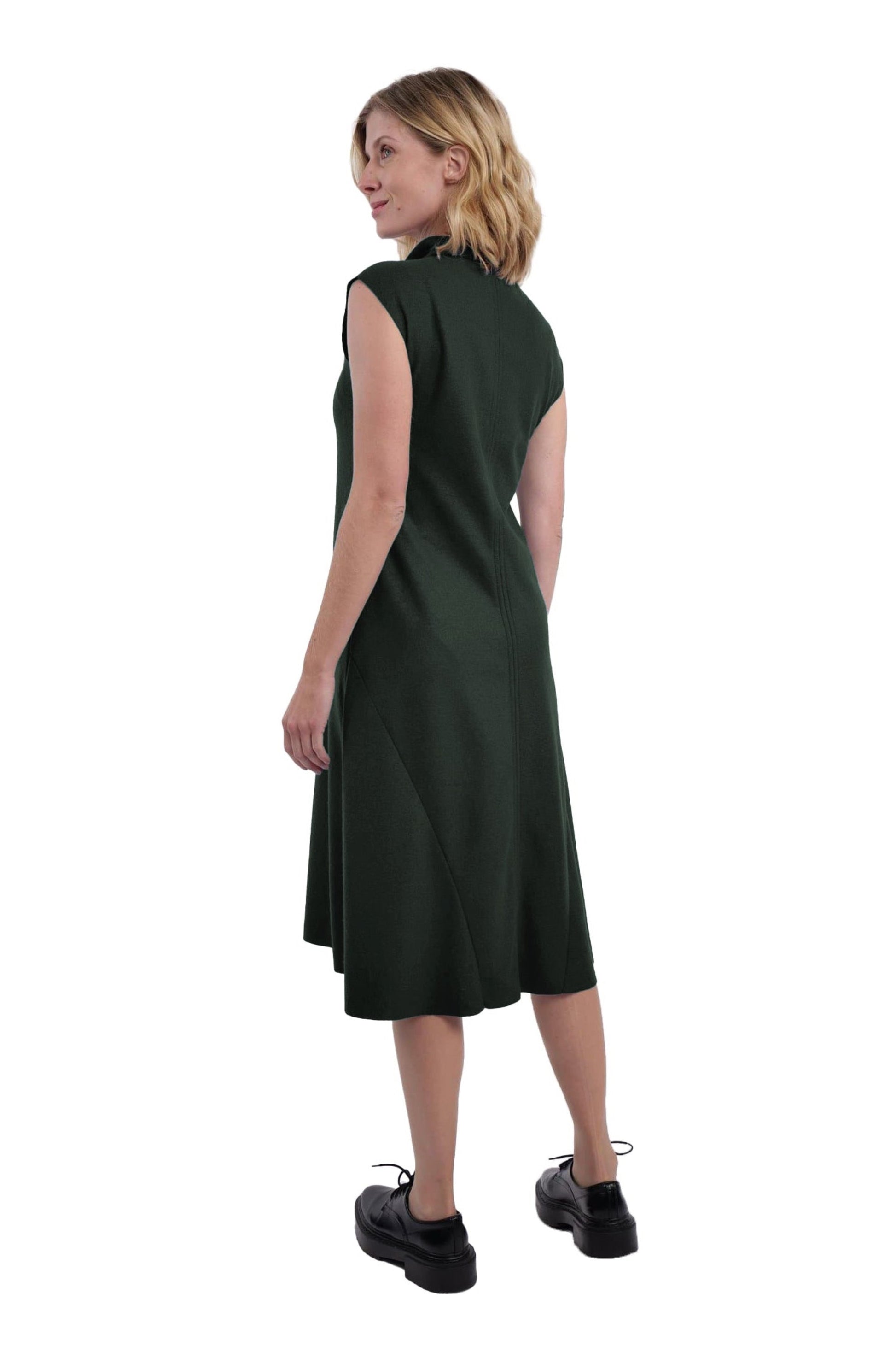 ELEMENTE CLEMENTE Boiled Wool A-Line Dress in Dark Emerald