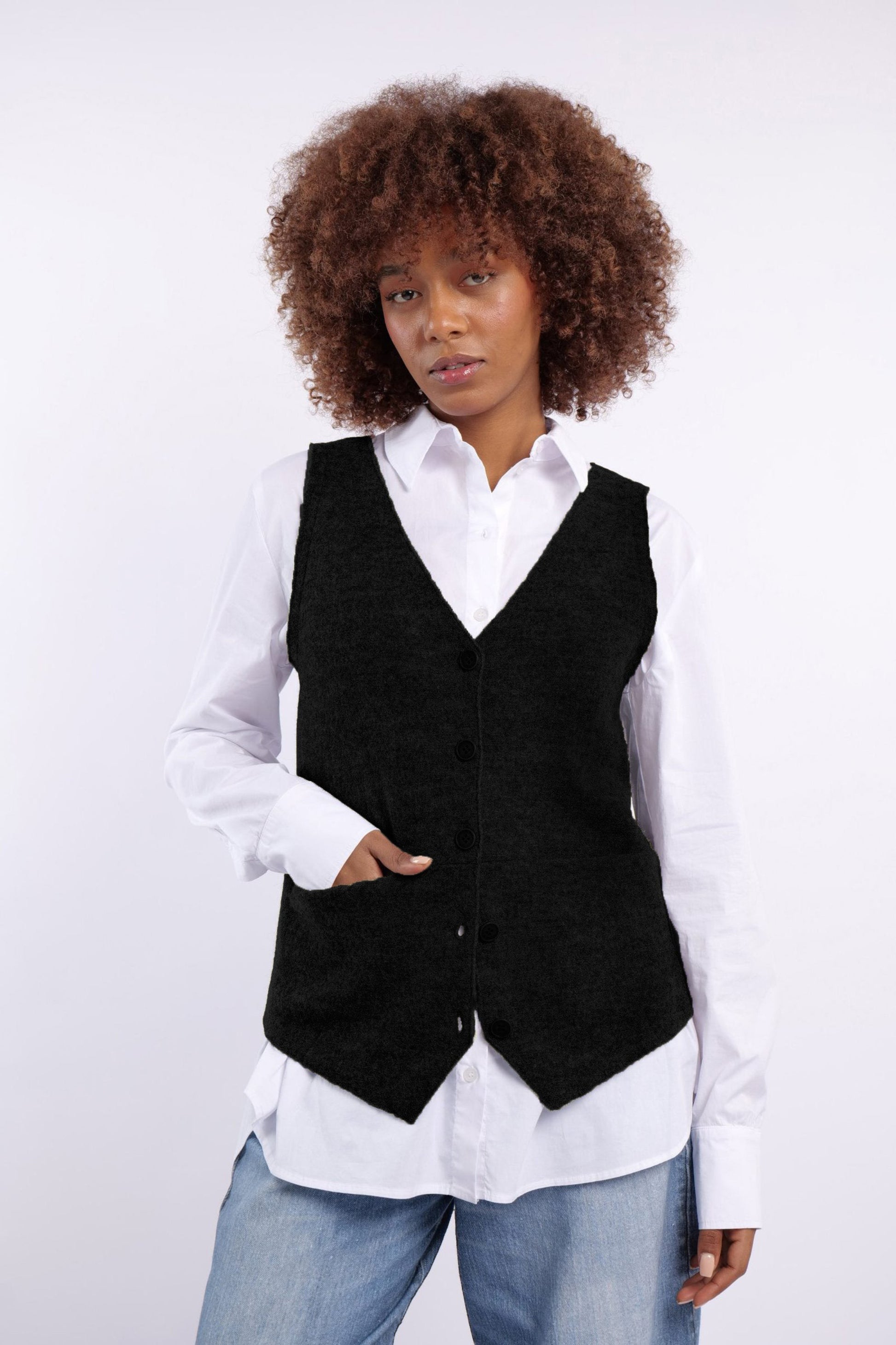 ELEMENTE CLEMENTE Wool Pocketed Vest in Black