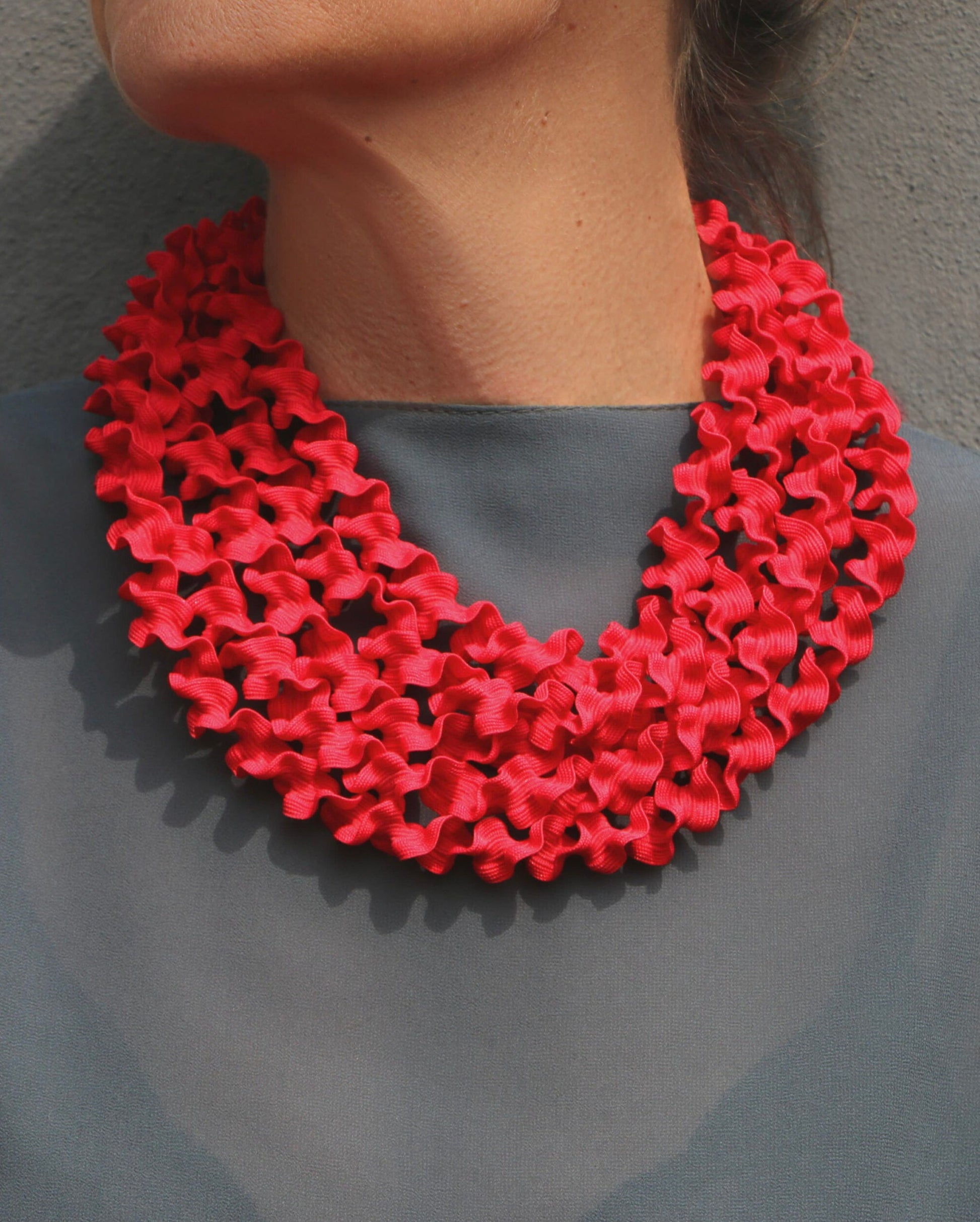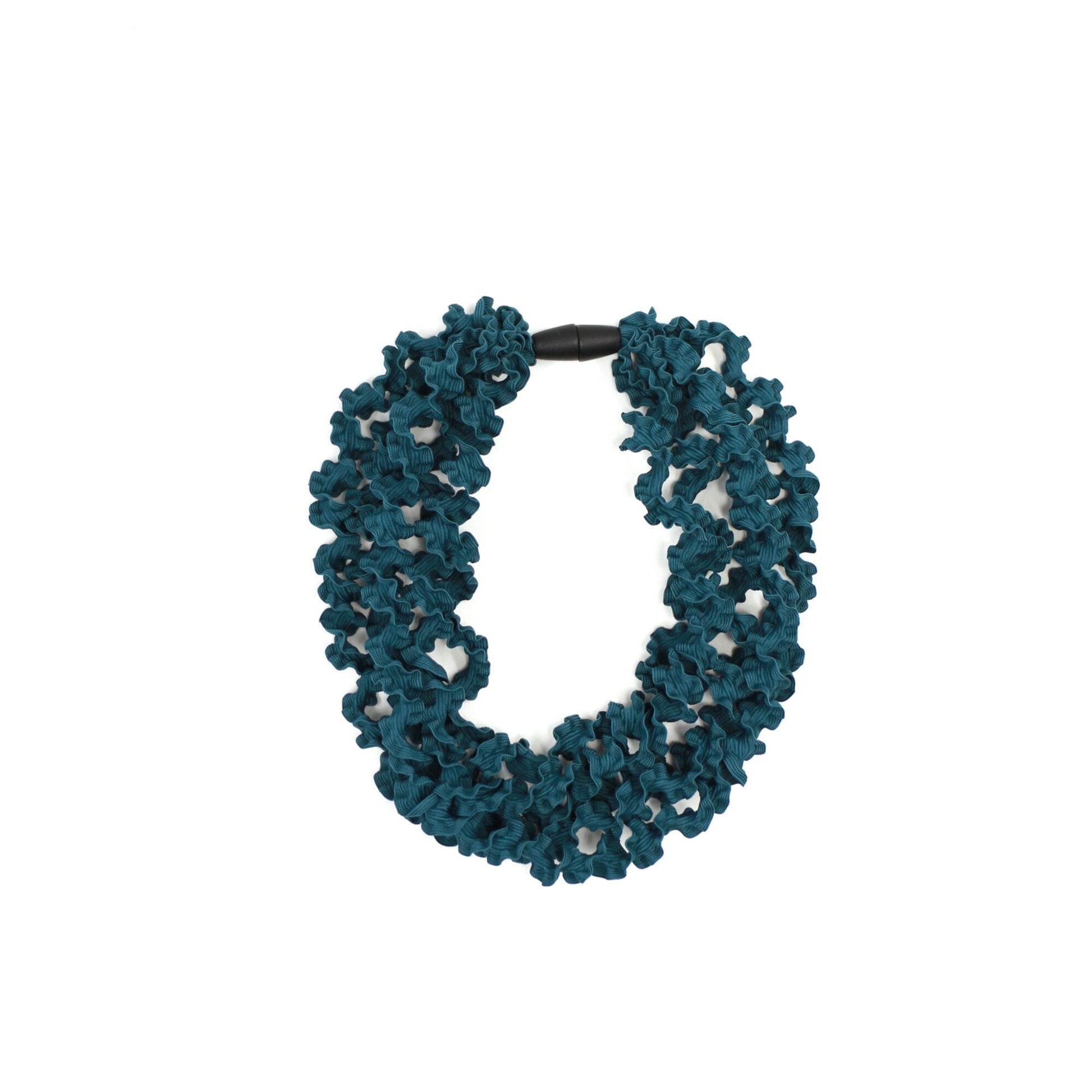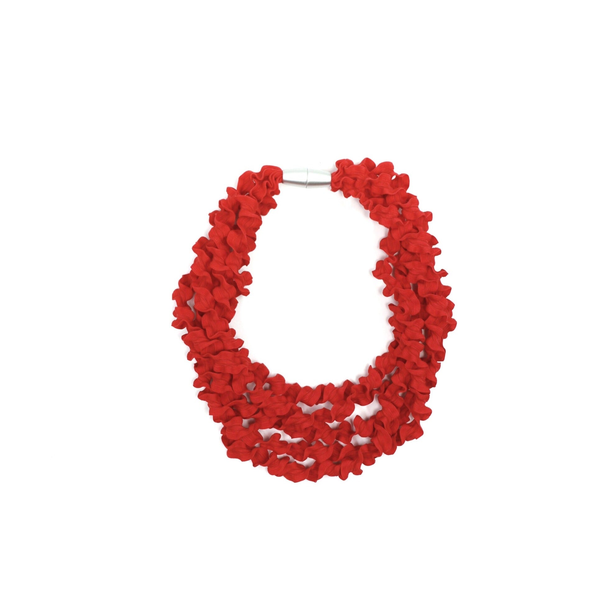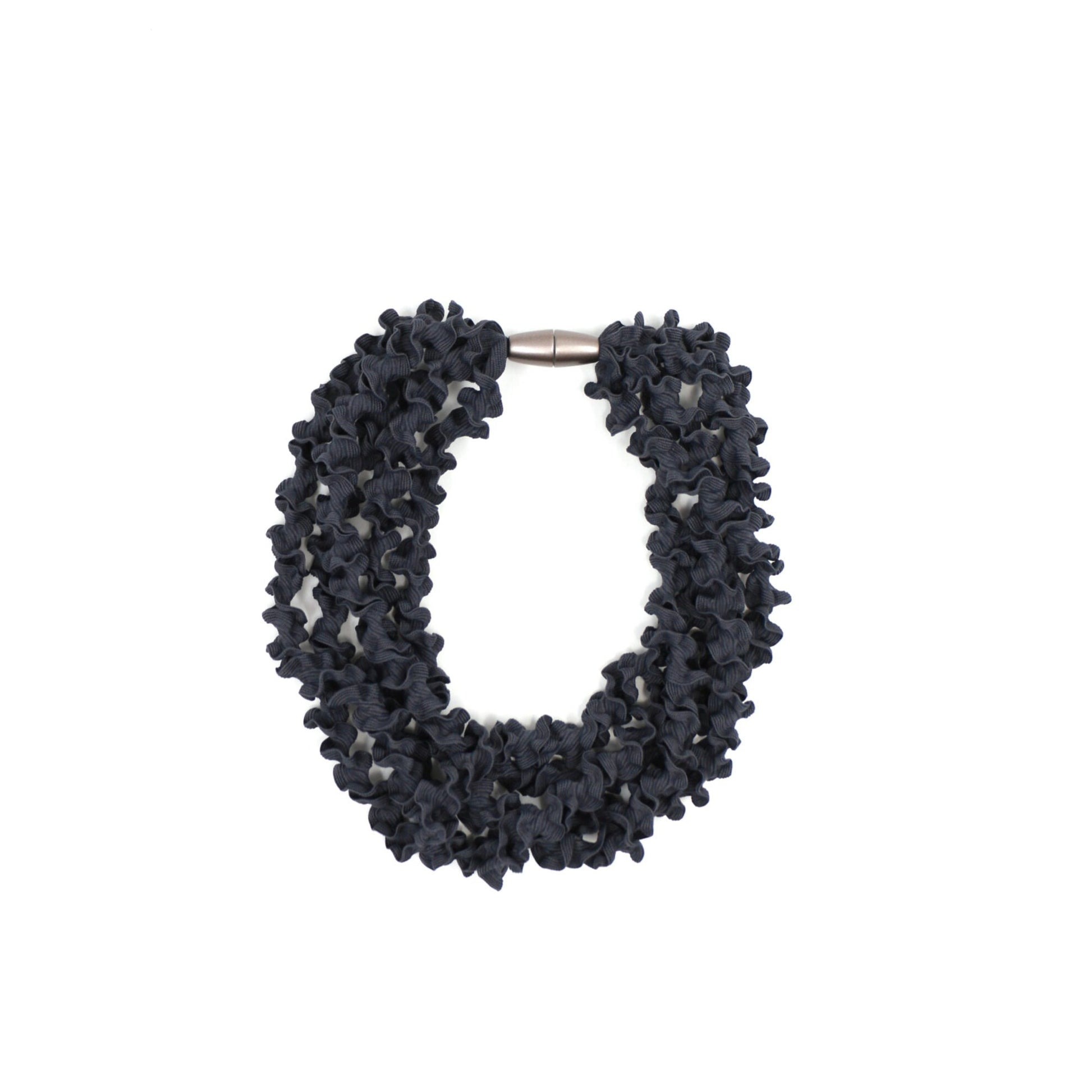 A beautiful ELLESANTI necklace made of five strands of curled elastic fabric with a magnetic resin clasp.