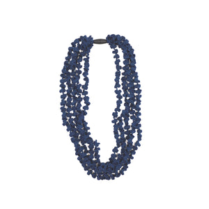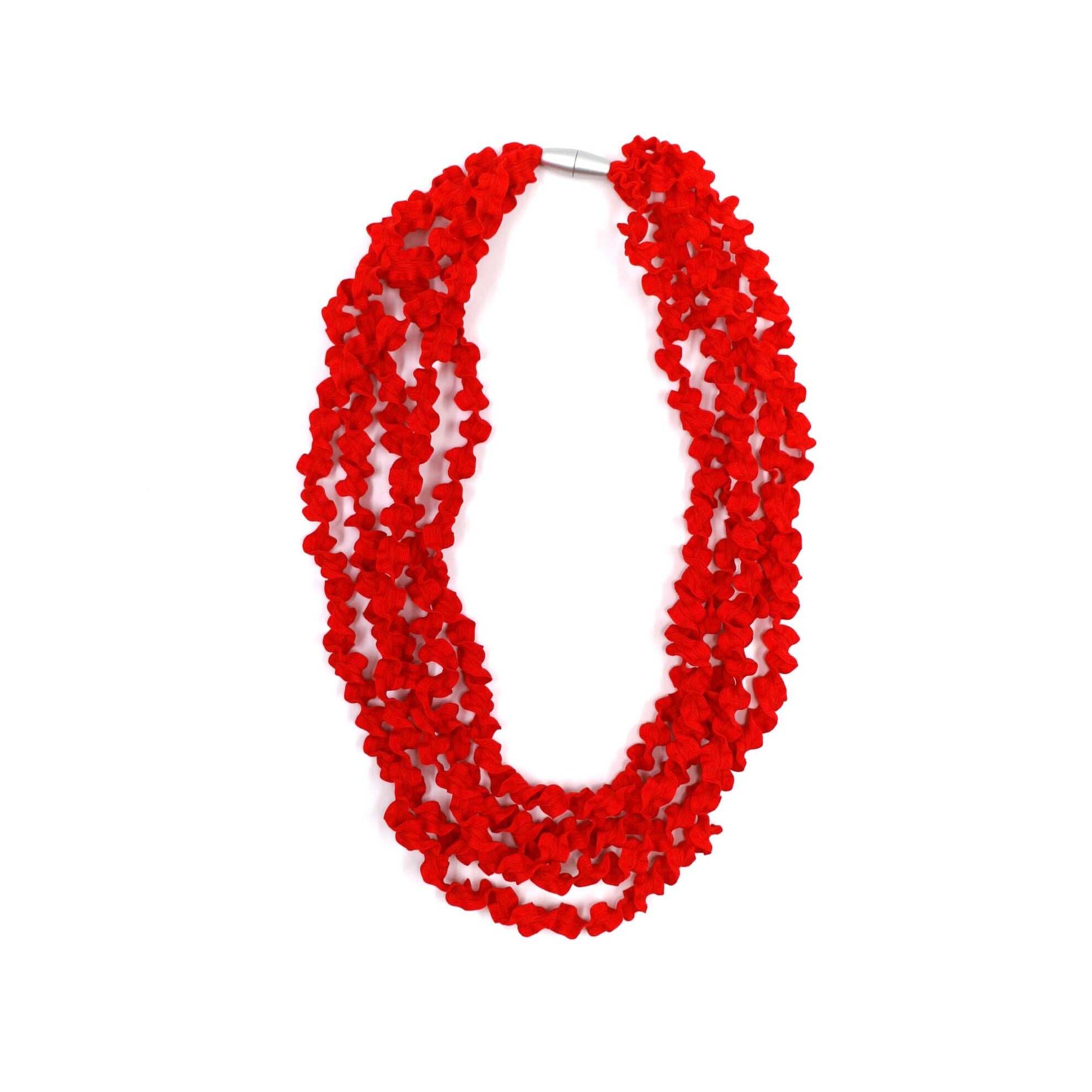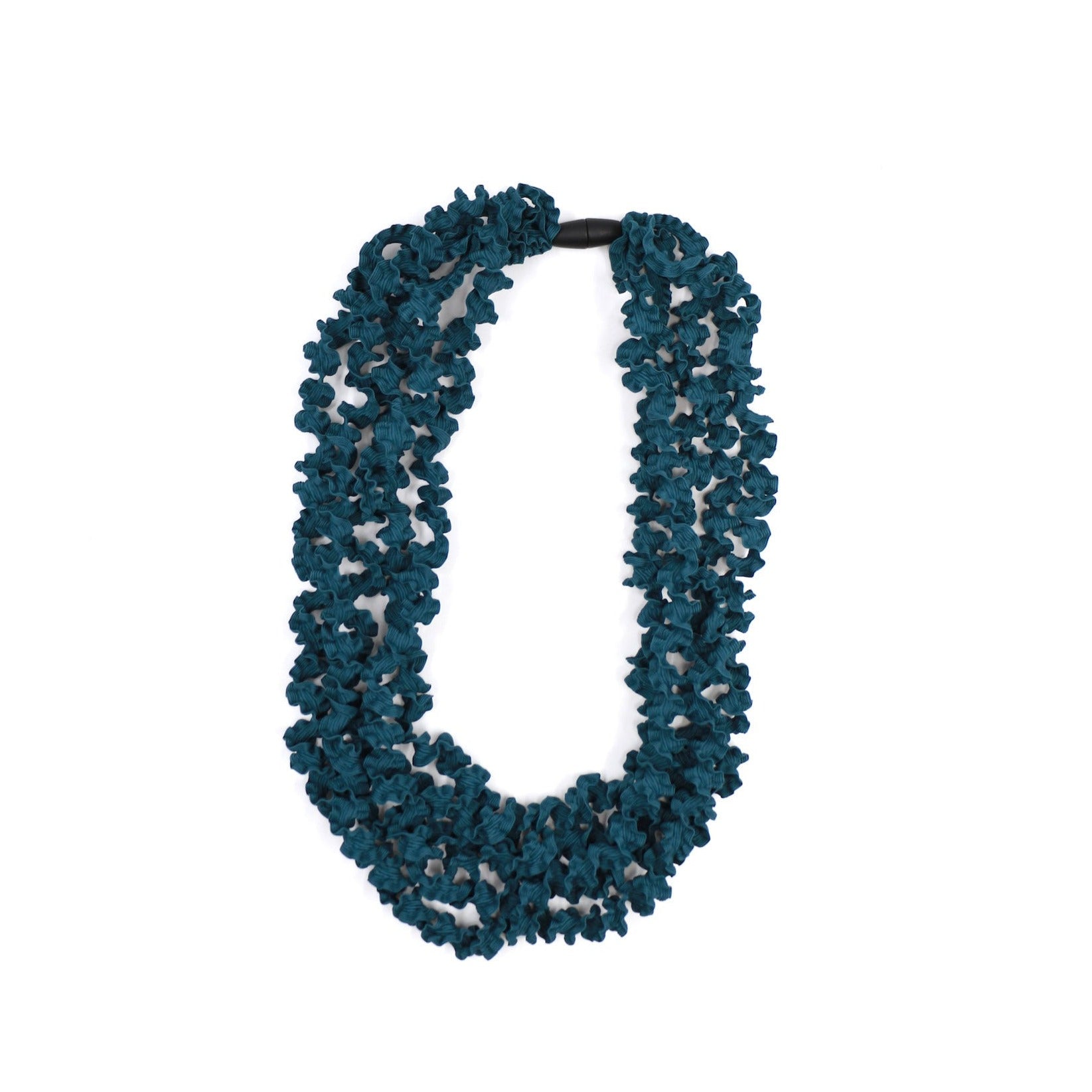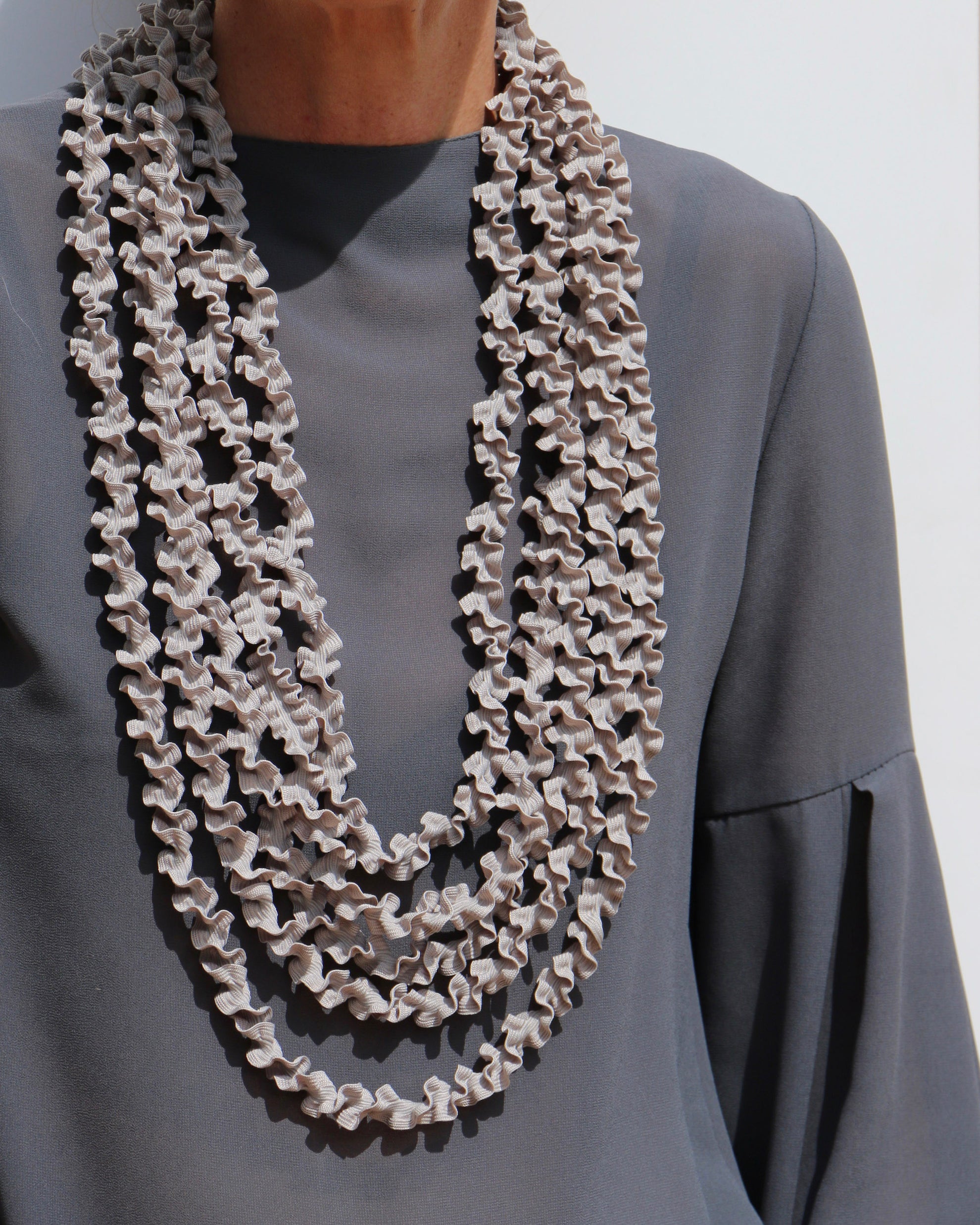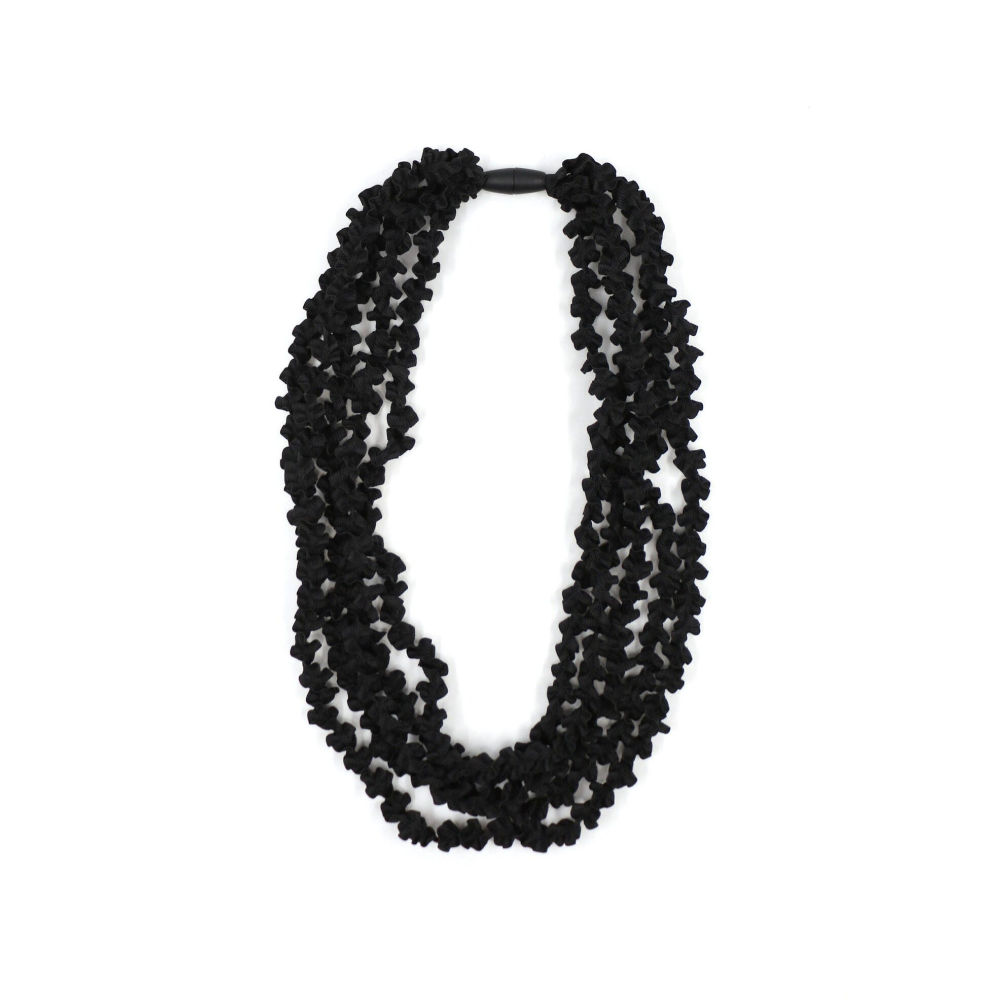 A beautiful ELLESANTI necklace made of five long strands of curled elastic fabric with a magnetic resin clasp.