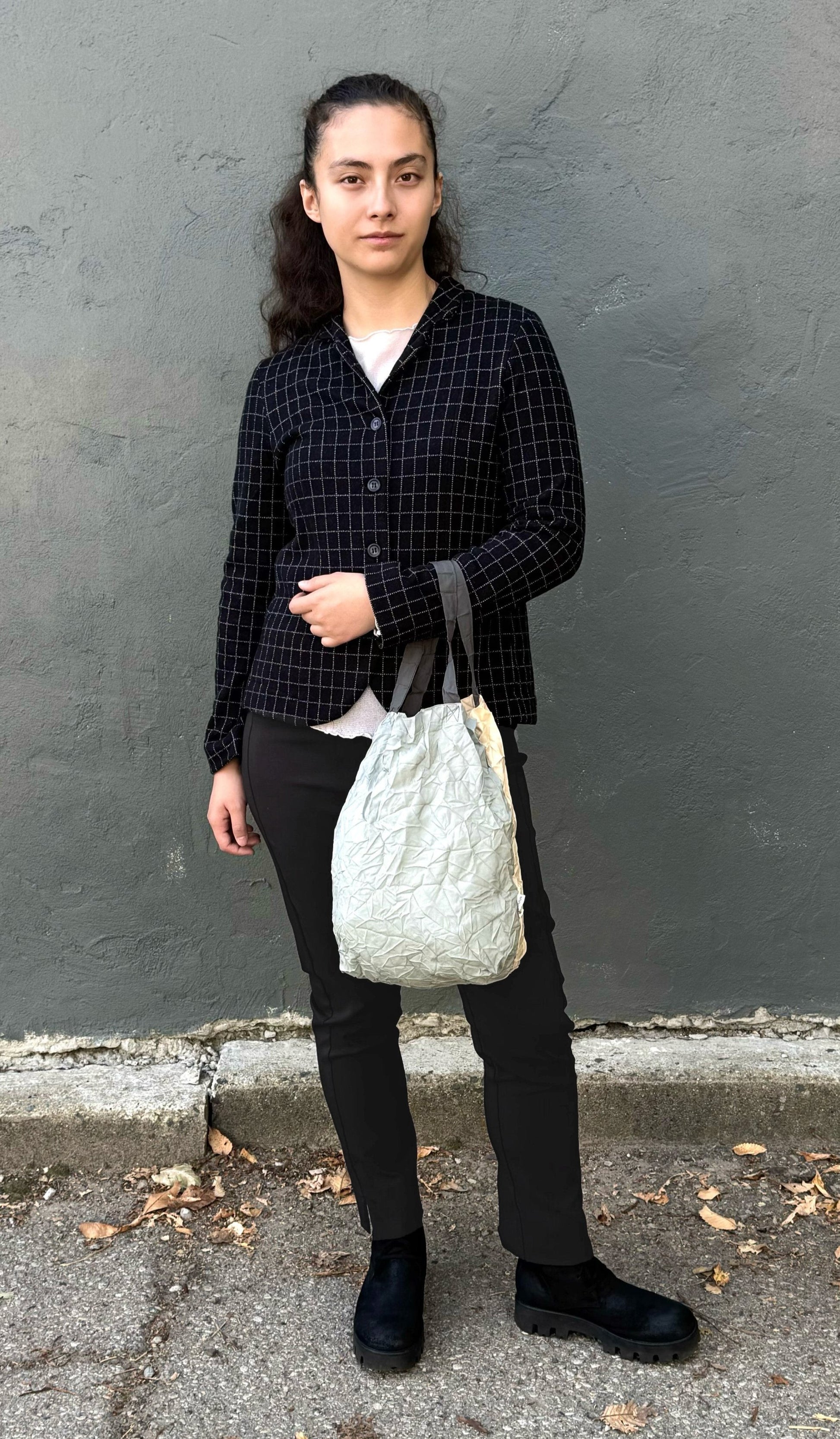 100% Polylactic Acid (PLA) - (Bags: blue, beige/silver)