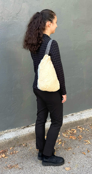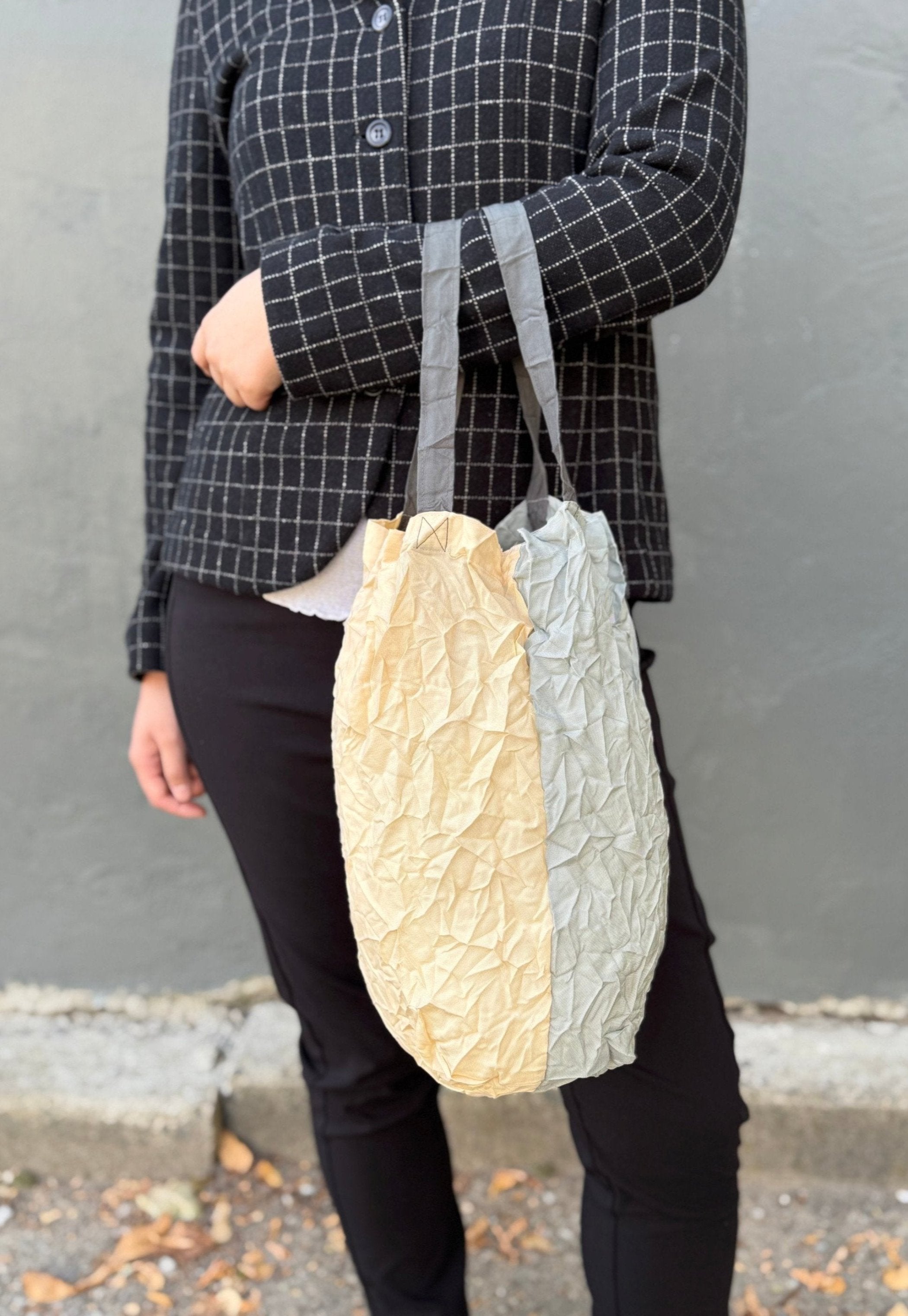 Crafted from eco-friendly fabrics, these crumpled hand or over-the-shoulder bags are both practical and fun. They can hold up to the same amount as 2L bottles. These bags are easy to carry around, just scrunch it up into the inside pocket.
