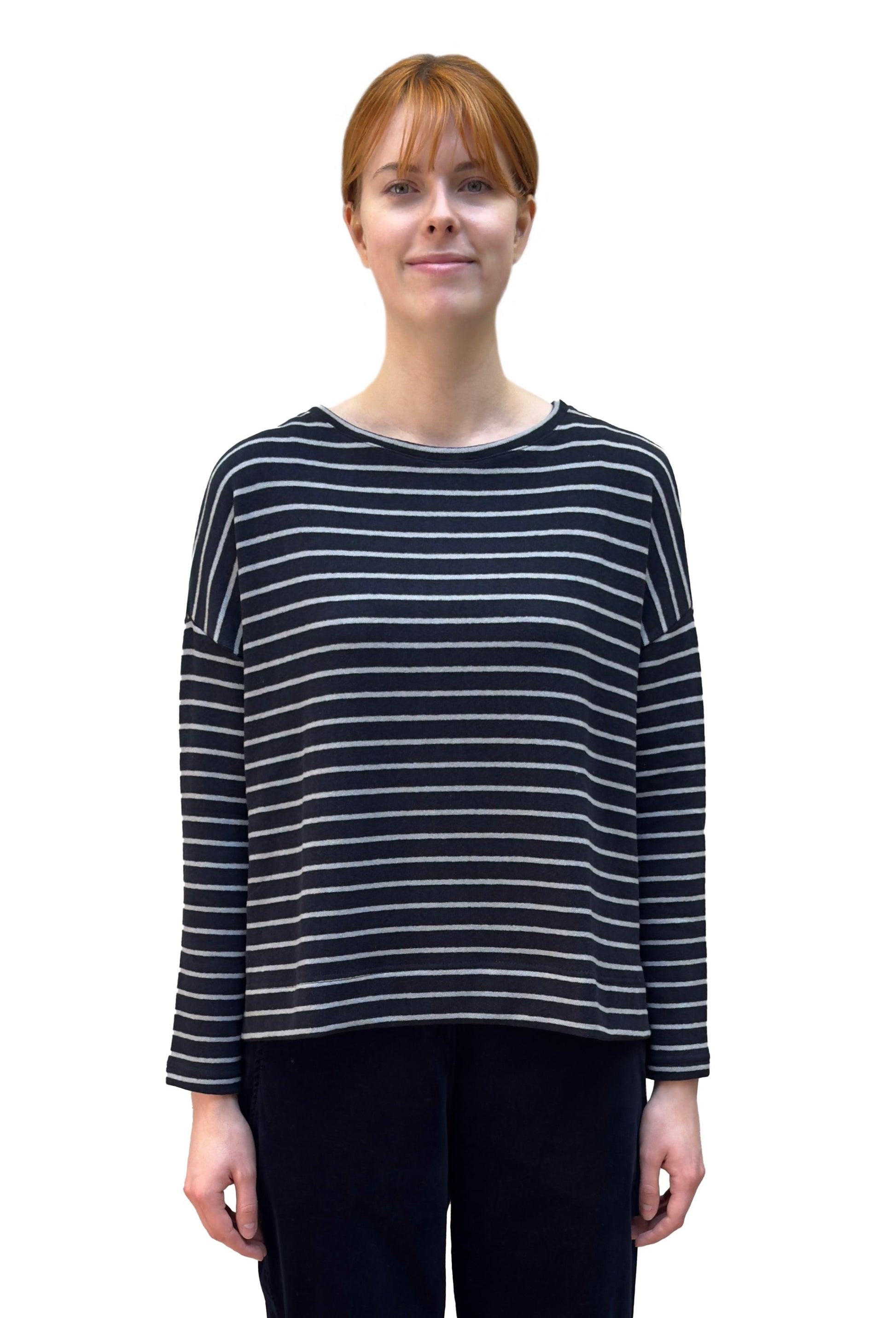 MAMA B Cozy Hi Low Pullover in Night Stripes