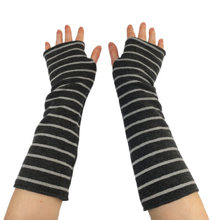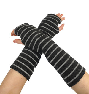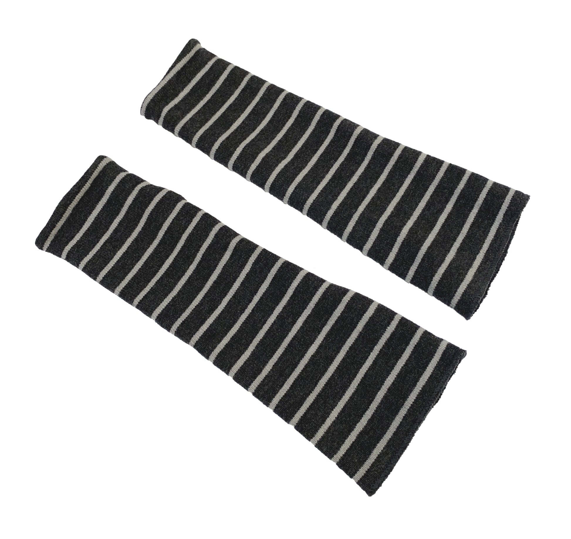 MAMA B Long Cozy Knit Arm Warmers in Anthracite Stripes