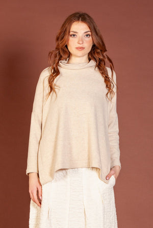 Mama B Cozy Knit Cowl Neck Slit Pullover in Oatmeal