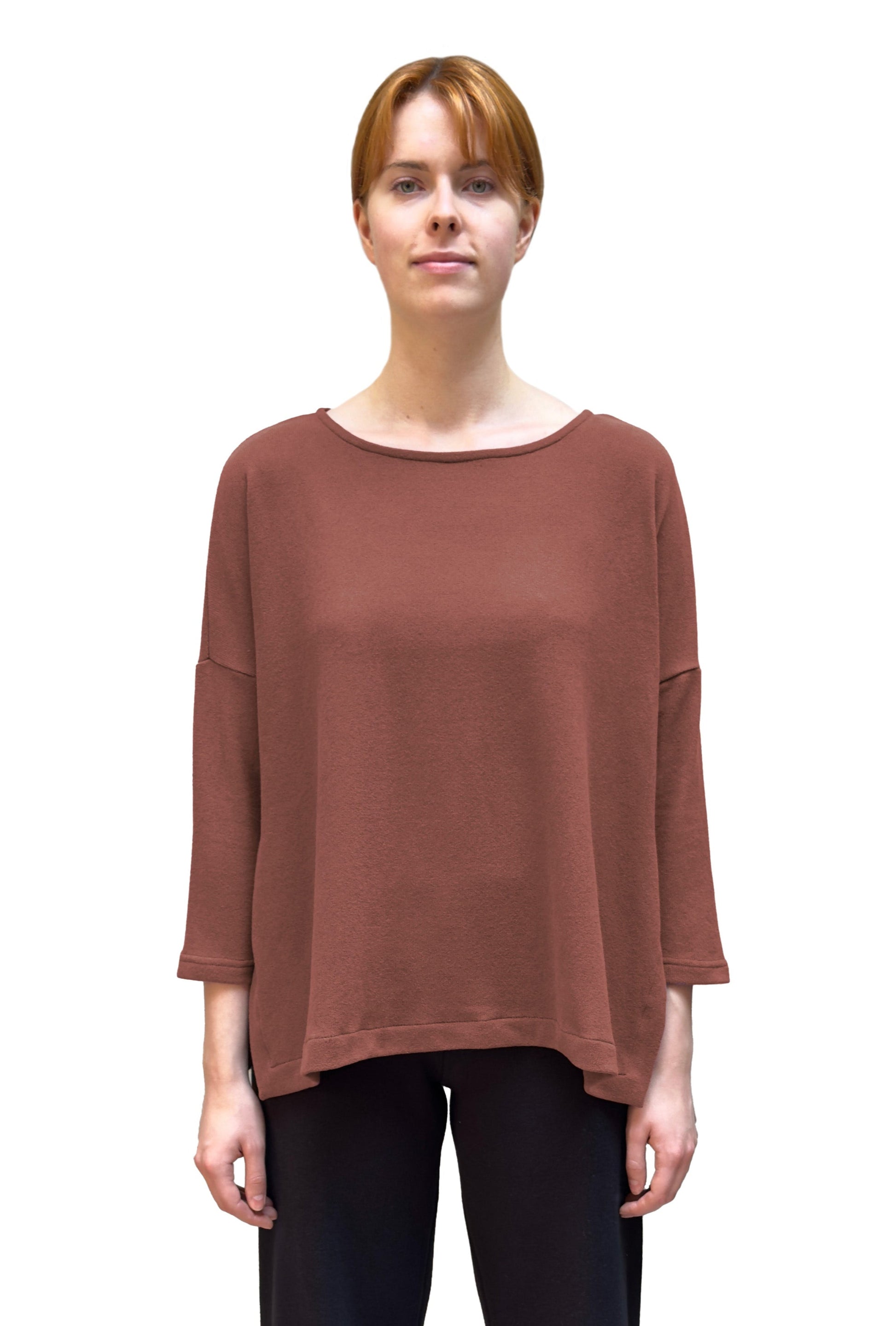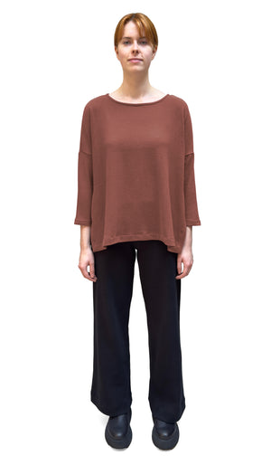 This top is crafted from Mama B's cozy knit blend featuring a solid colour. It has a round neckline, dropped shoulders, long slim fitting sleeves and a loose fit for comfort. This top features 10” slits at the sides and a hi low hem. A perfect choice for everyday wear.