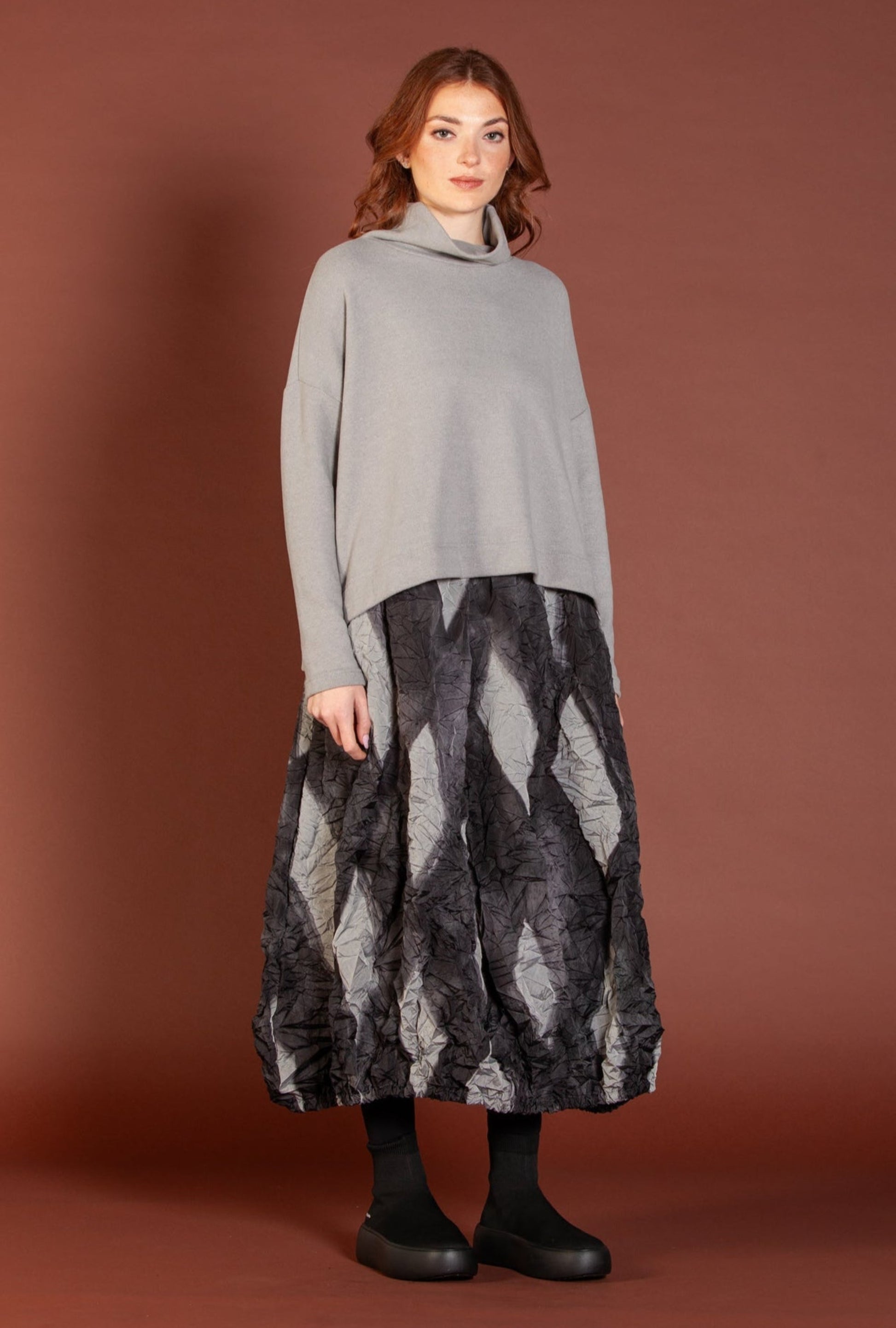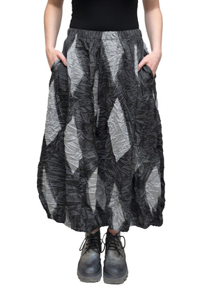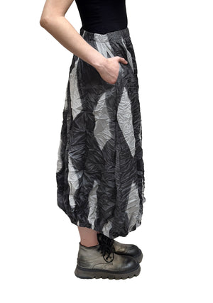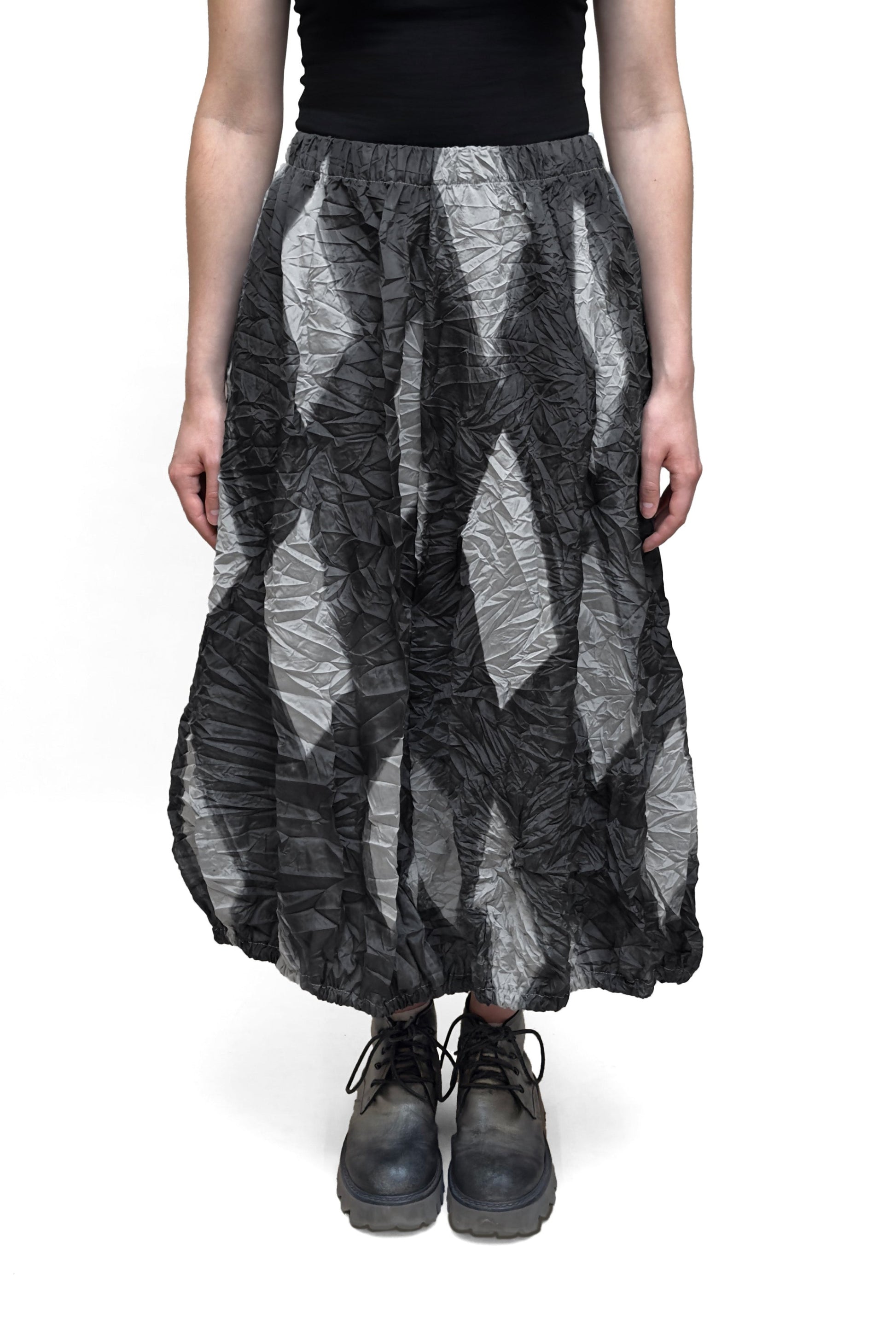 MAMA B Ruched Crinkled Skirt in Anthracite Print