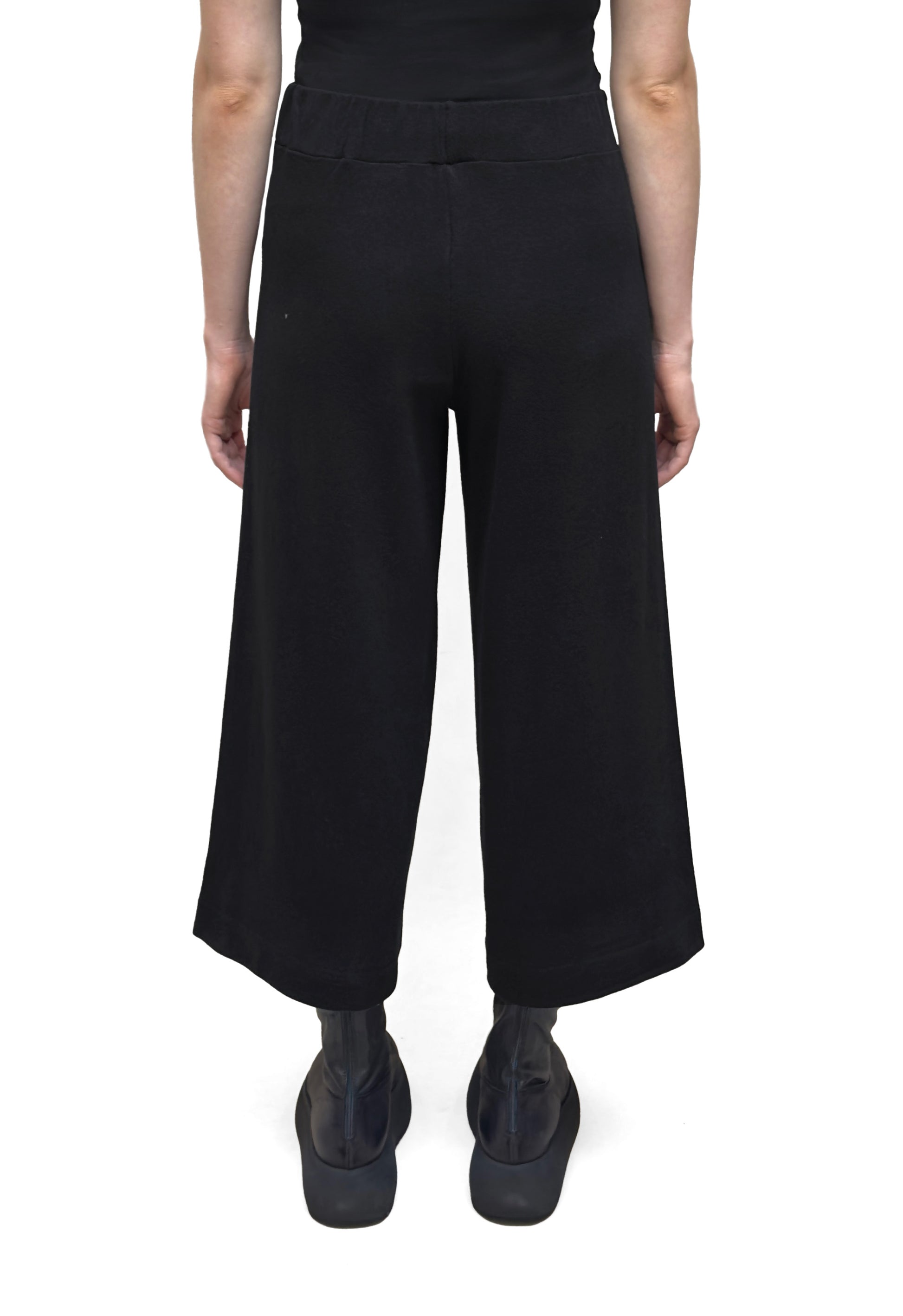 These pants are crafted from Mama B's cozy knit fabric and offer a wide leg silhouette. Ankle-length and featuring an elastic waistband, they combine style and flexibility for a comfortable look.