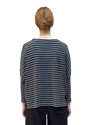 MAMA B Cozy Knit Boxy Round Neck Top in Anthracite Stripes