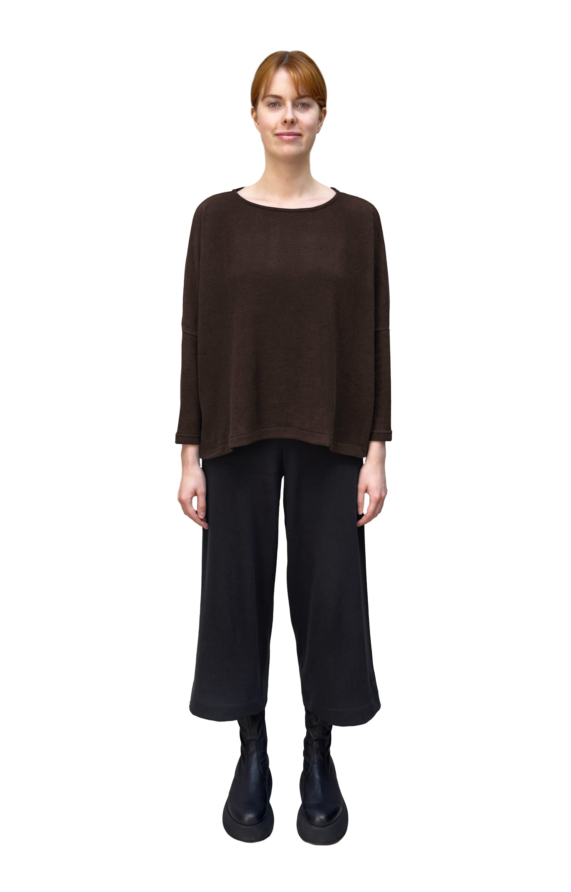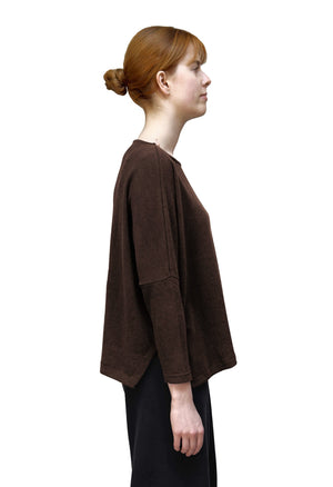 MAMA B Cozy Knit Boxy Round Neck Top in Umber