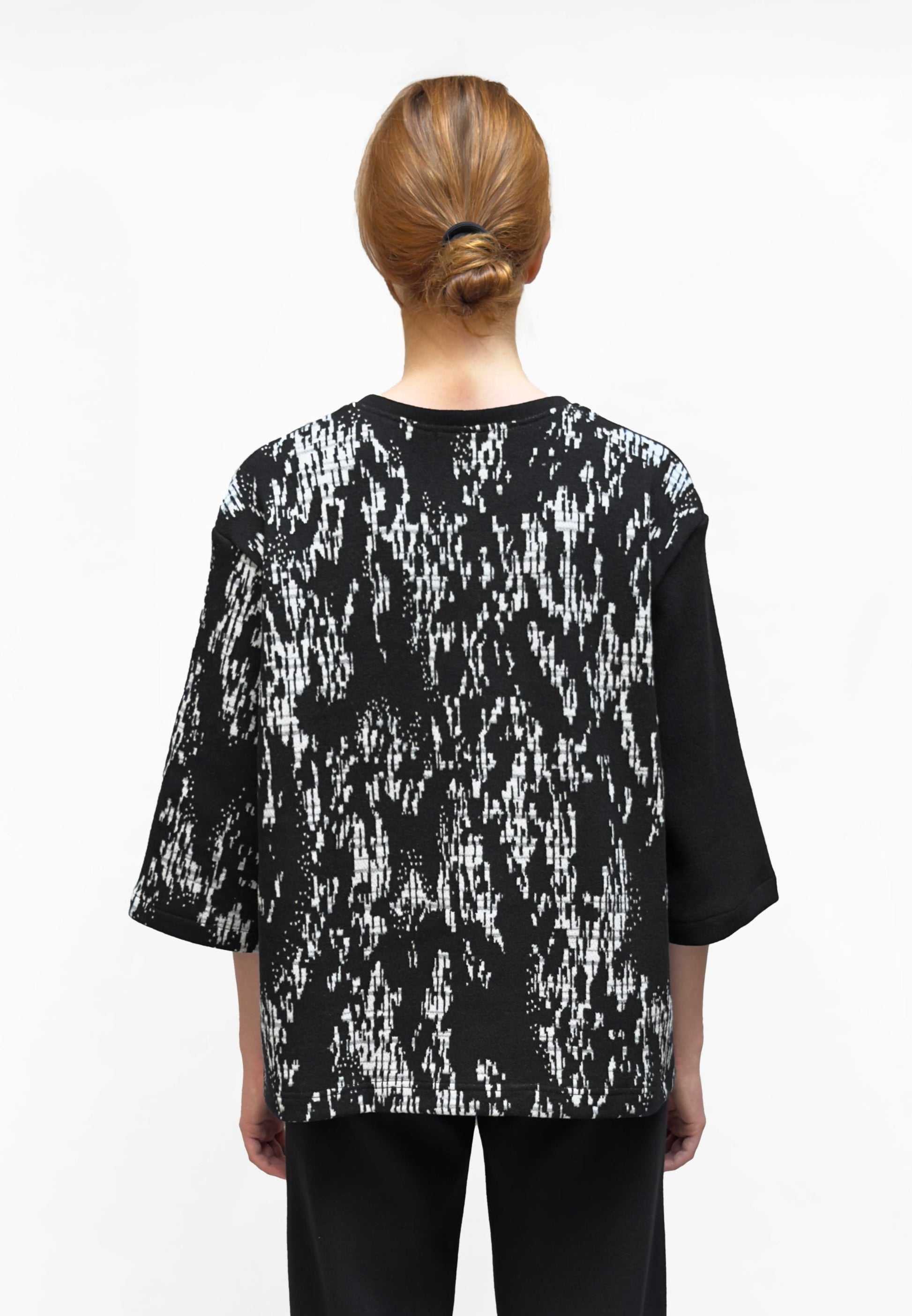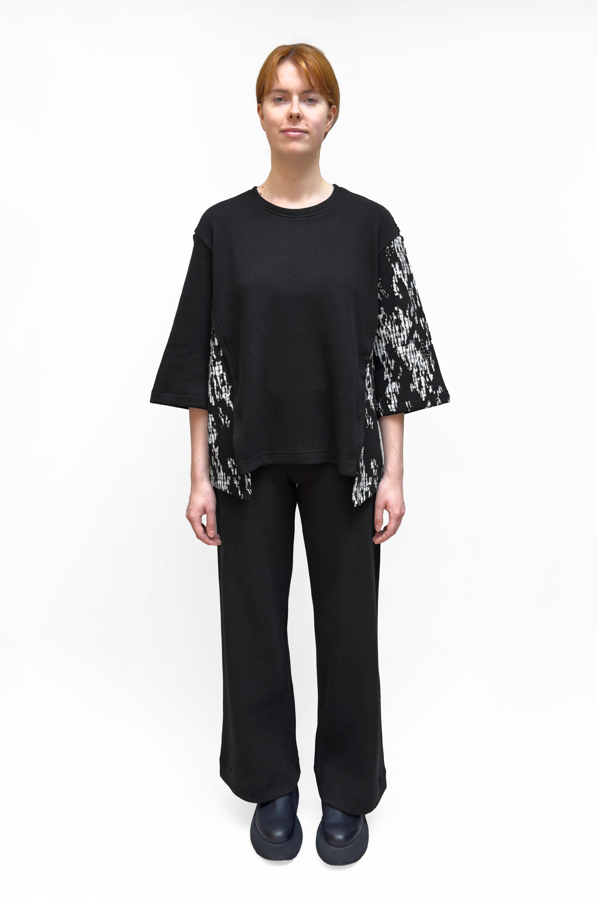 MAMA B Cozy Jacquard Round Neck Slit Pullover in Black Print