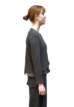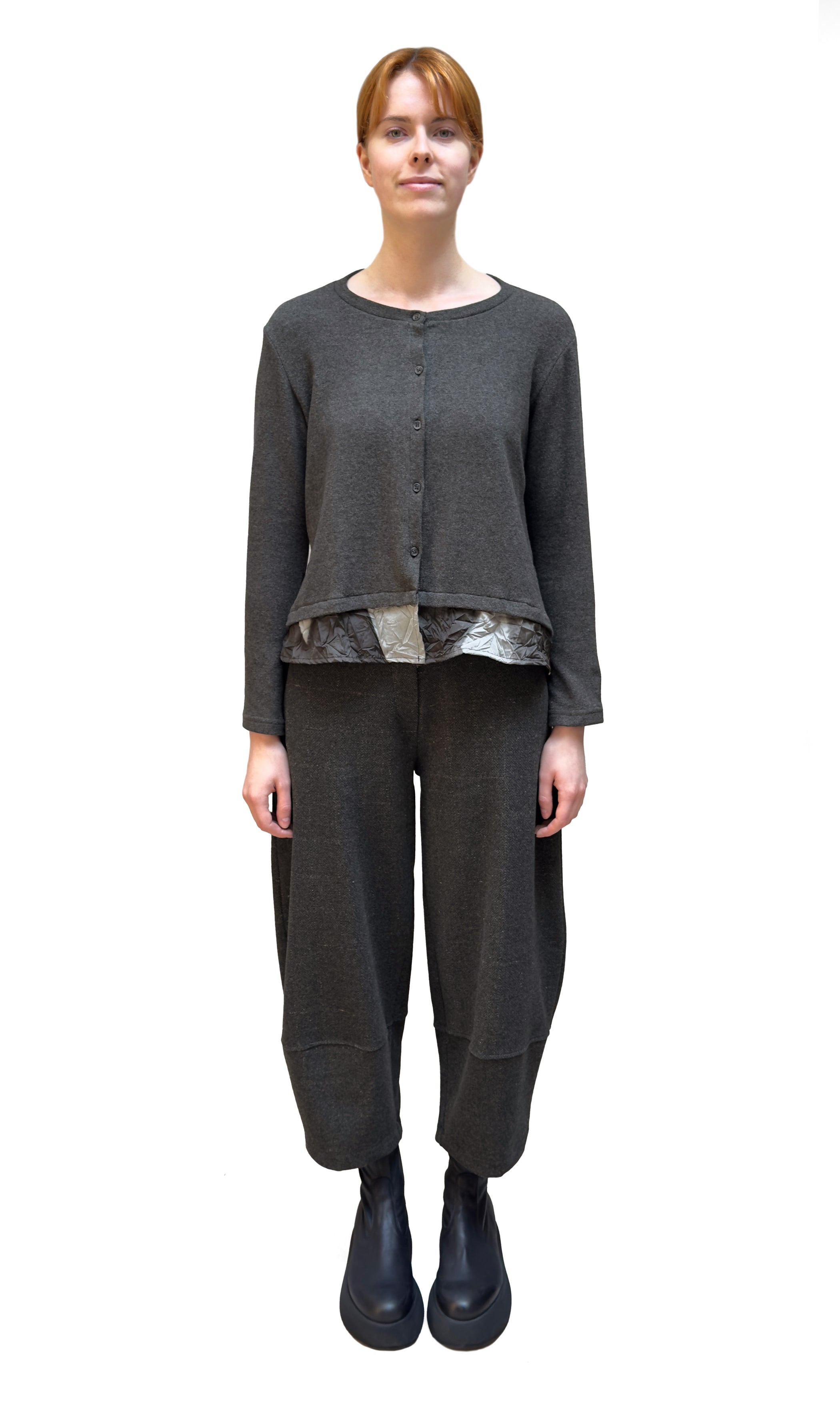 Mama B Cozy Knit and Taffeta A-Line Cardigan in Anthracite