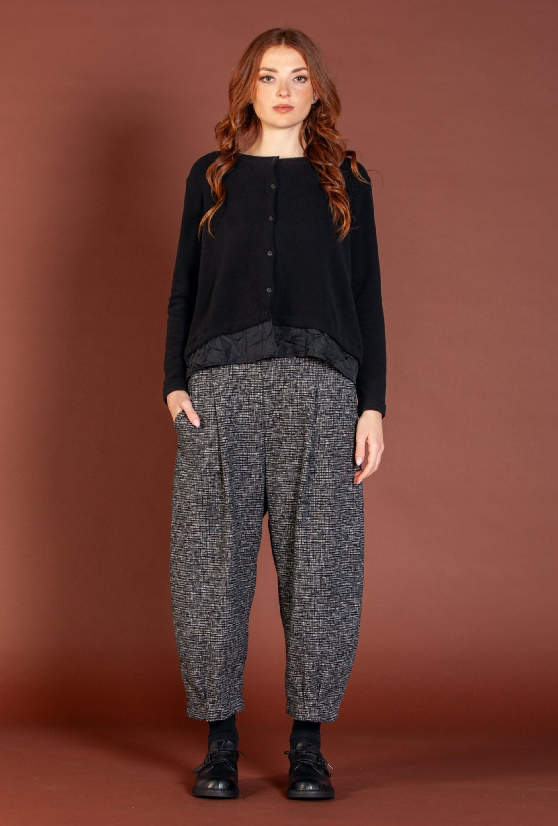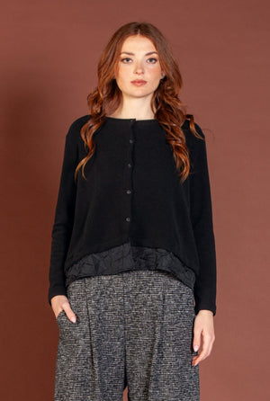 Mama B Cozy Knit and Taffeta A-Line Cardigan in Black