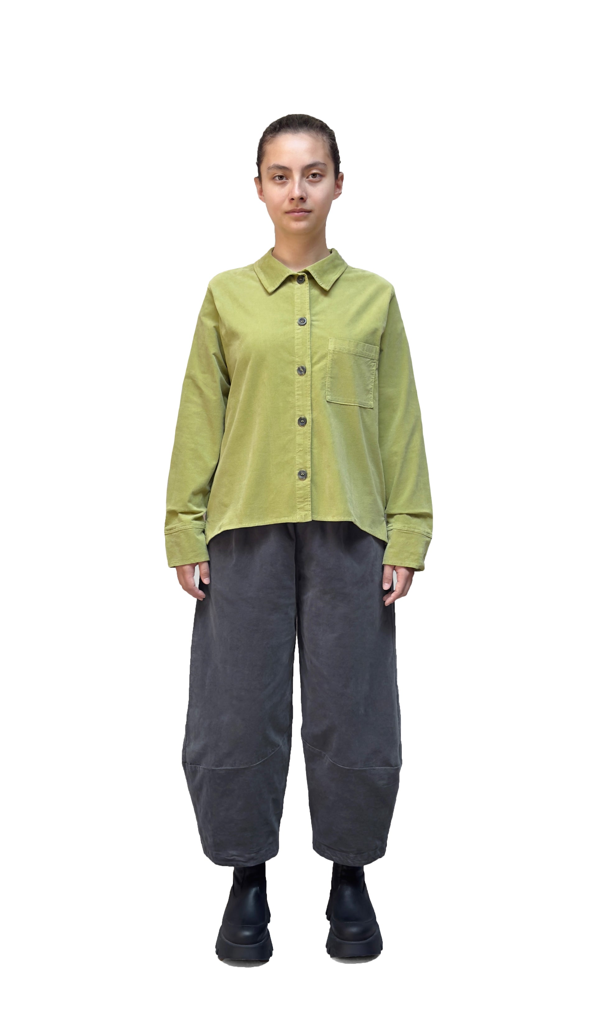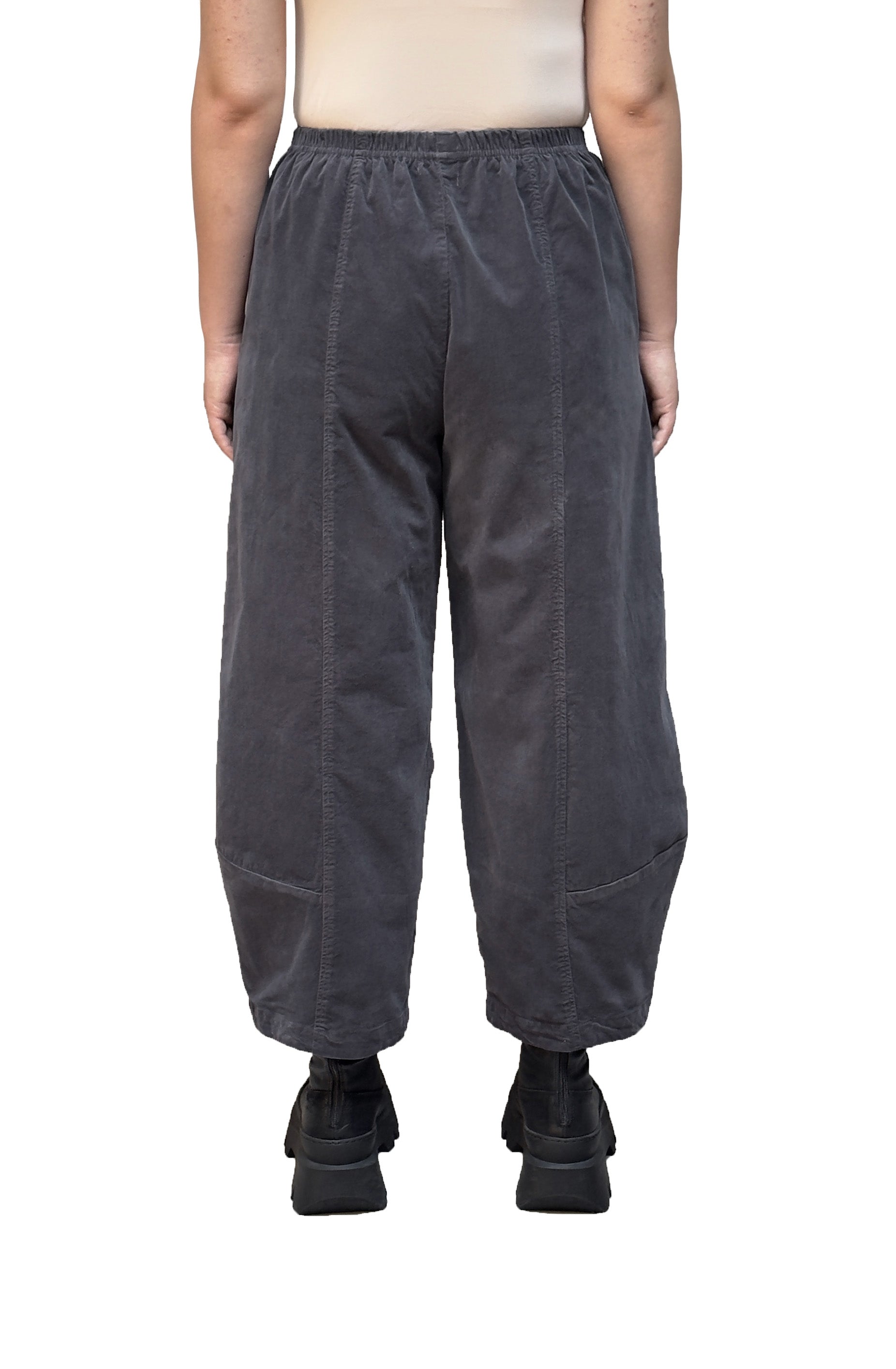 A Motion pant crafted in a mini cord, high stretch cotton. This pant features a centre seam at the back and seam details at the bottom that create a lantern shape. Its loose silhouette is designed for all-day comfort and its side seam pockets make it handy and versatile. An effortless and stylish piece!