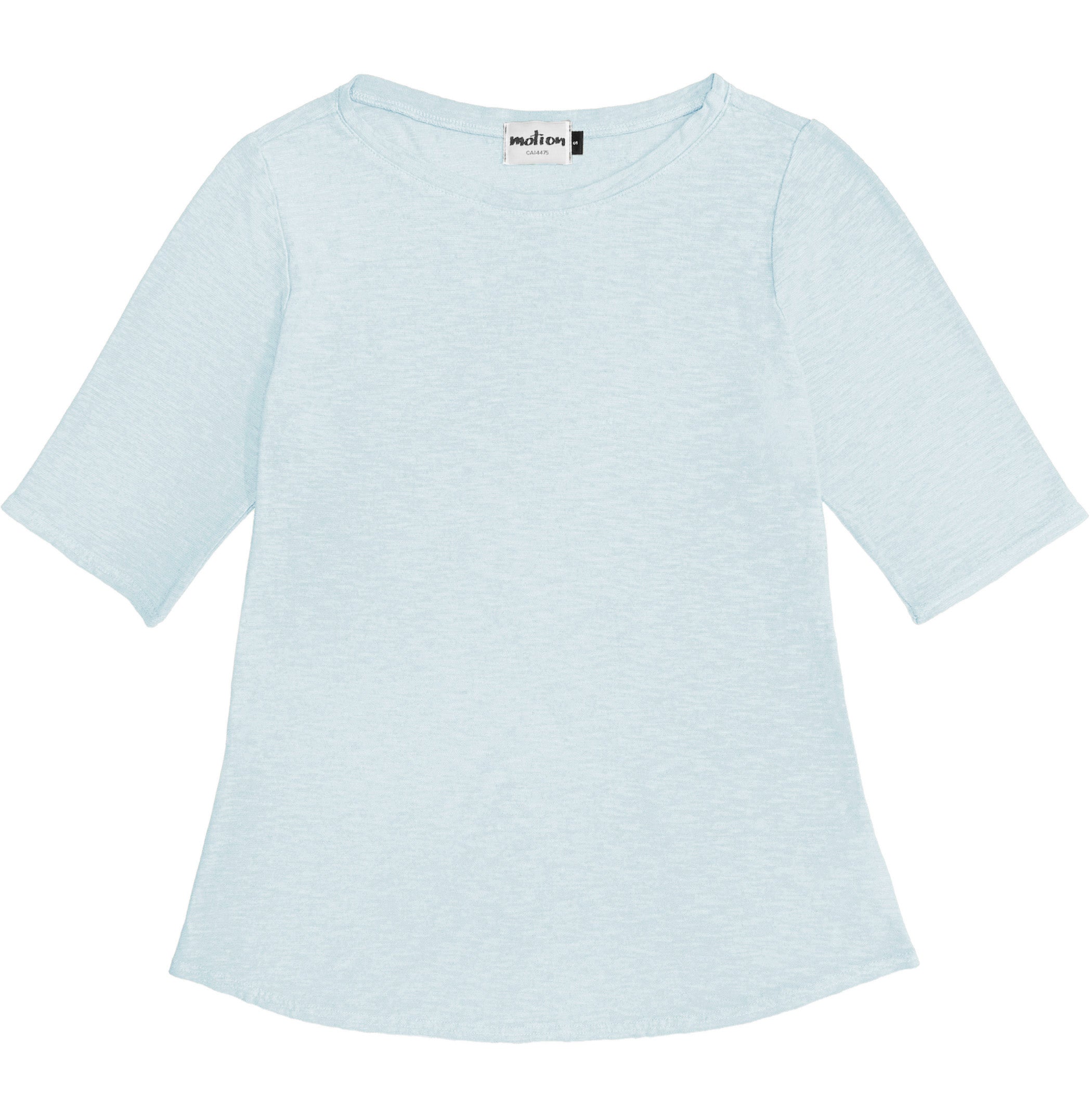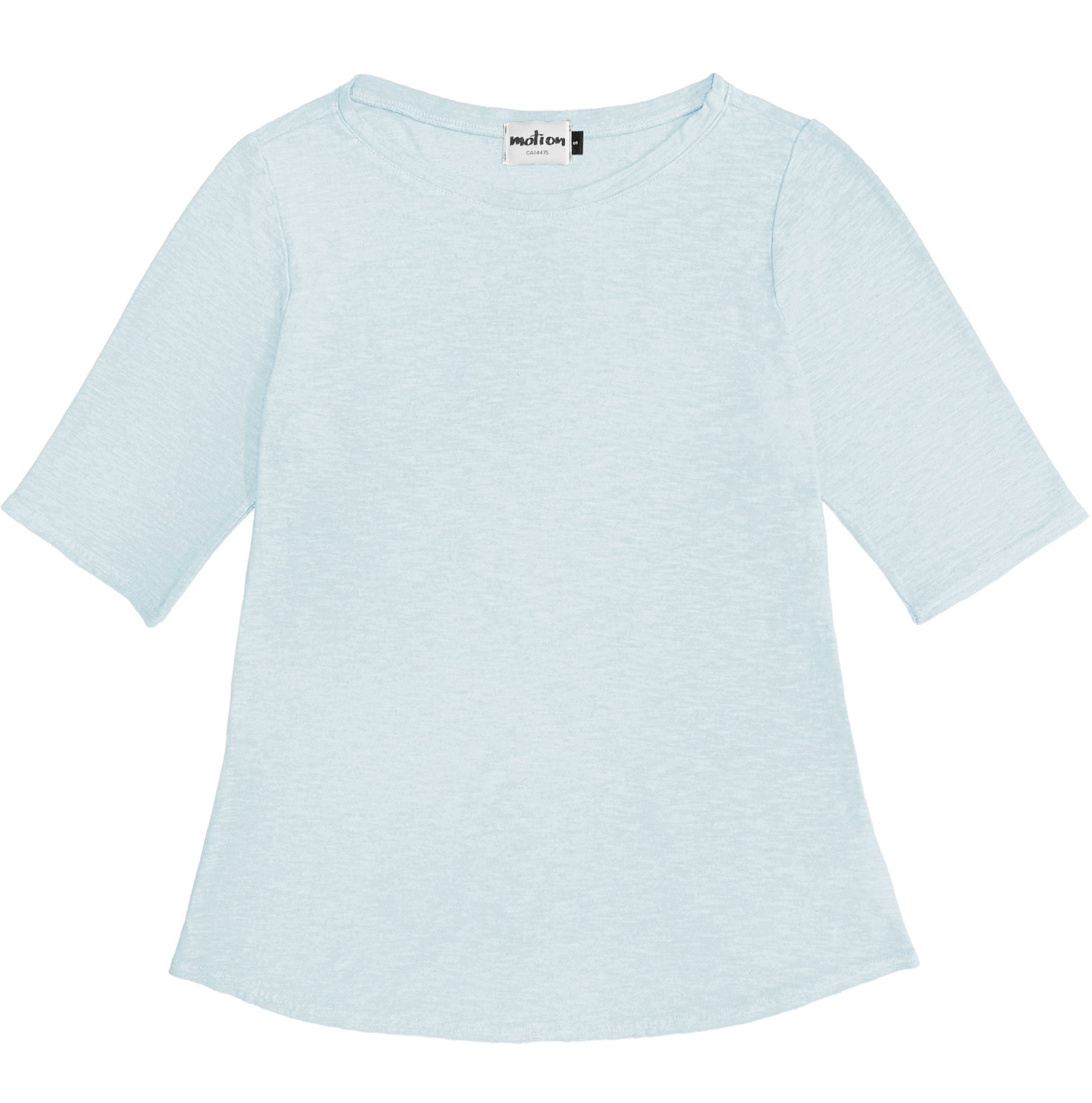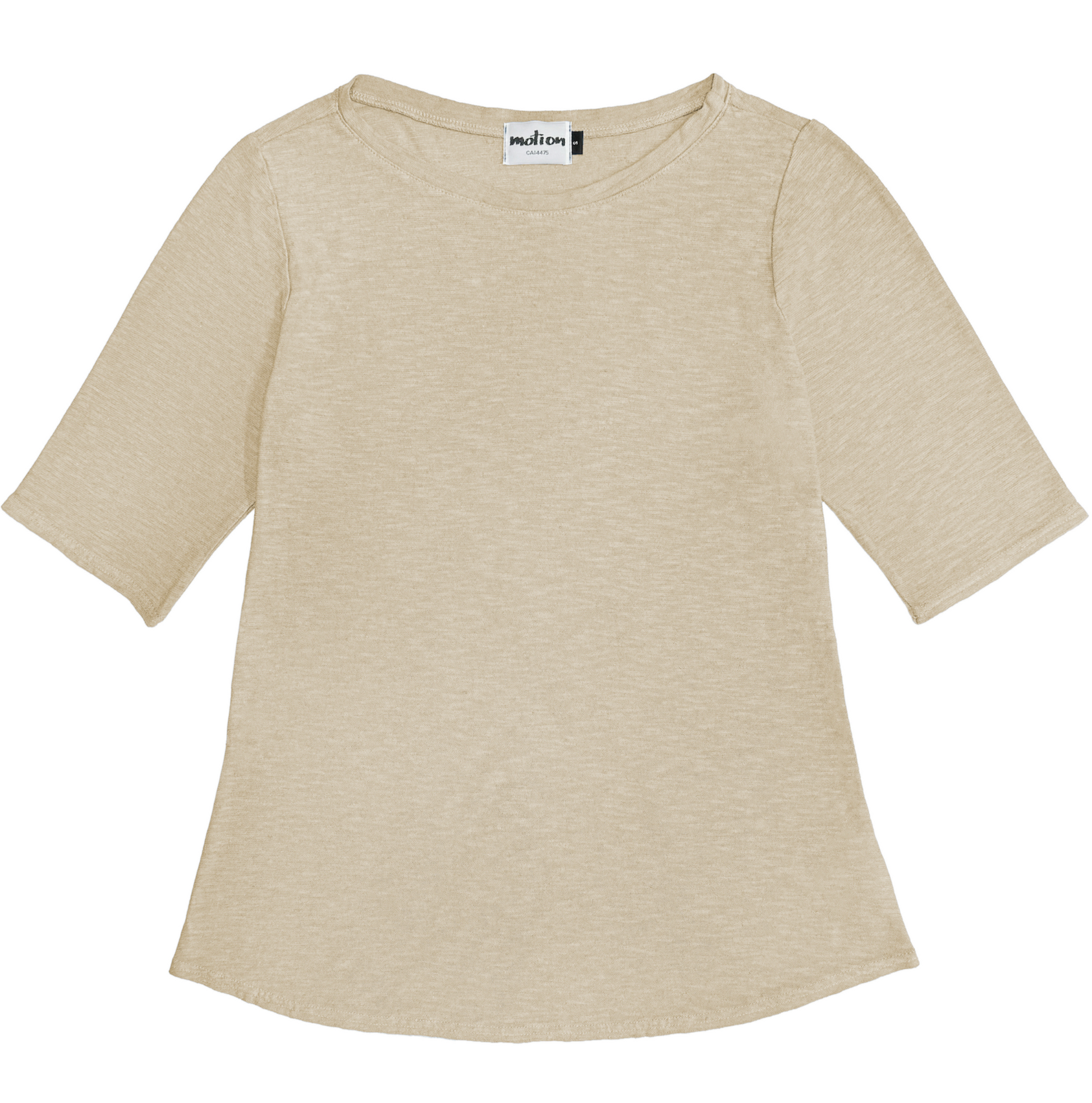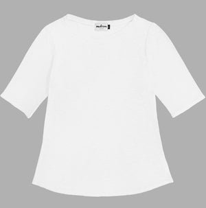 This tee is crafted from a cotton and linen blend, featuring a closer fitting cut with a soft A-line silhouette and a flattering round neck. It has set-in sleeves which are slim fitting and fall to the elbow. An essential piece.