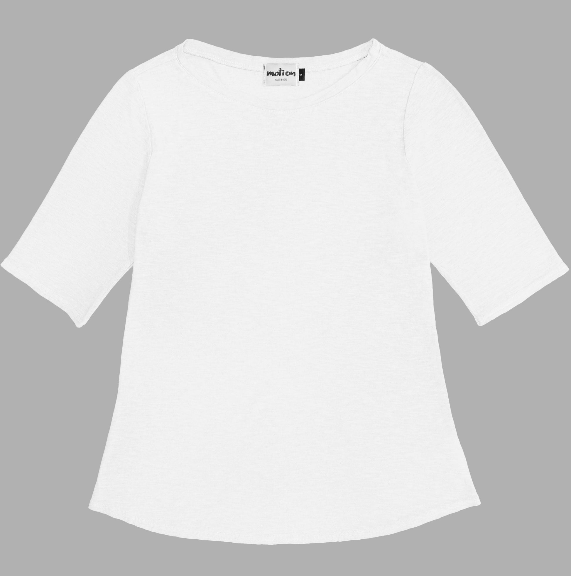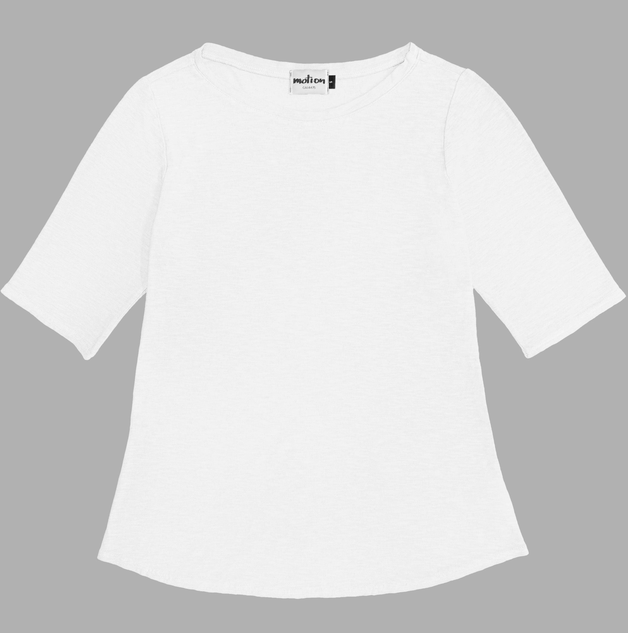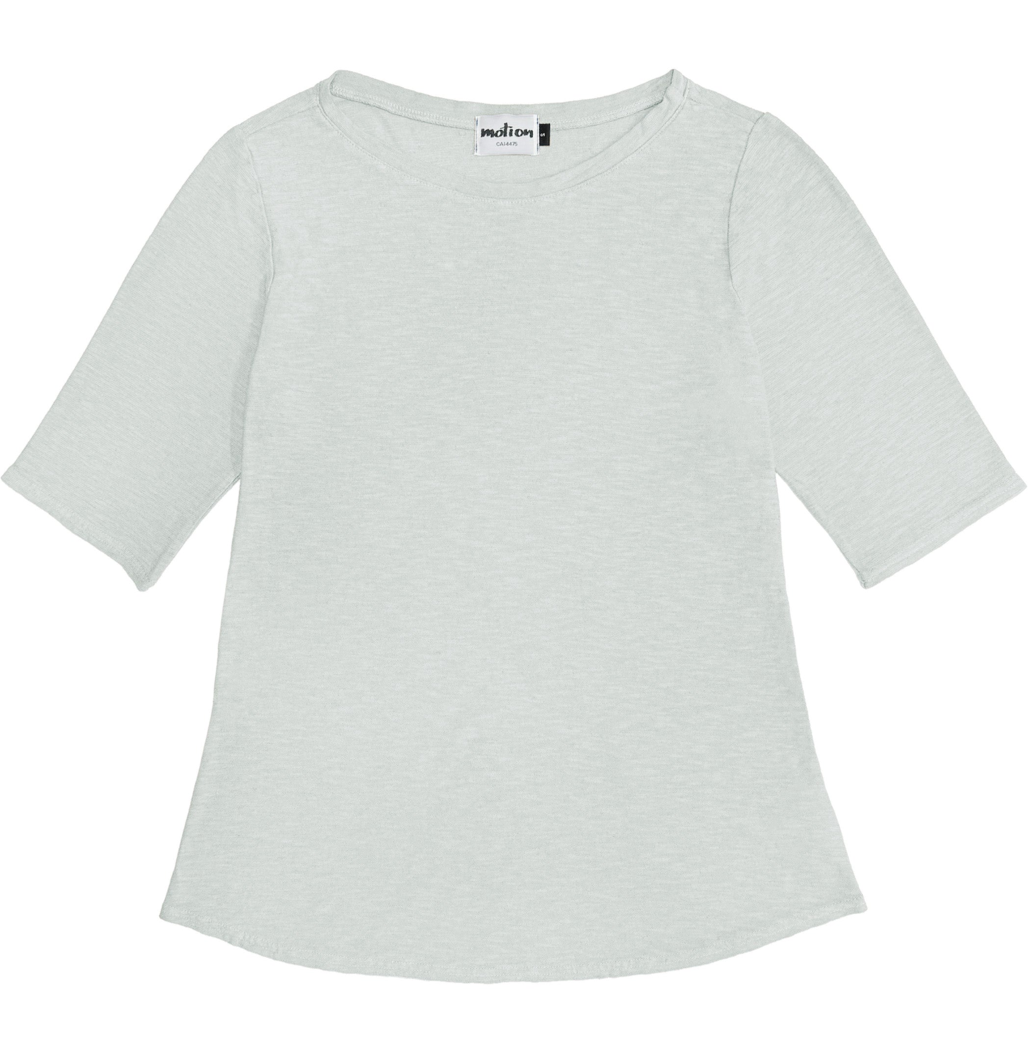 This tee is crafted from a cotton and linen blend, featuring a closer fitting cut with a soft A-line silhouette and a flattering round neck. It has set-in sleeves which are slim fitting and fall to the elbow. An essential piece.