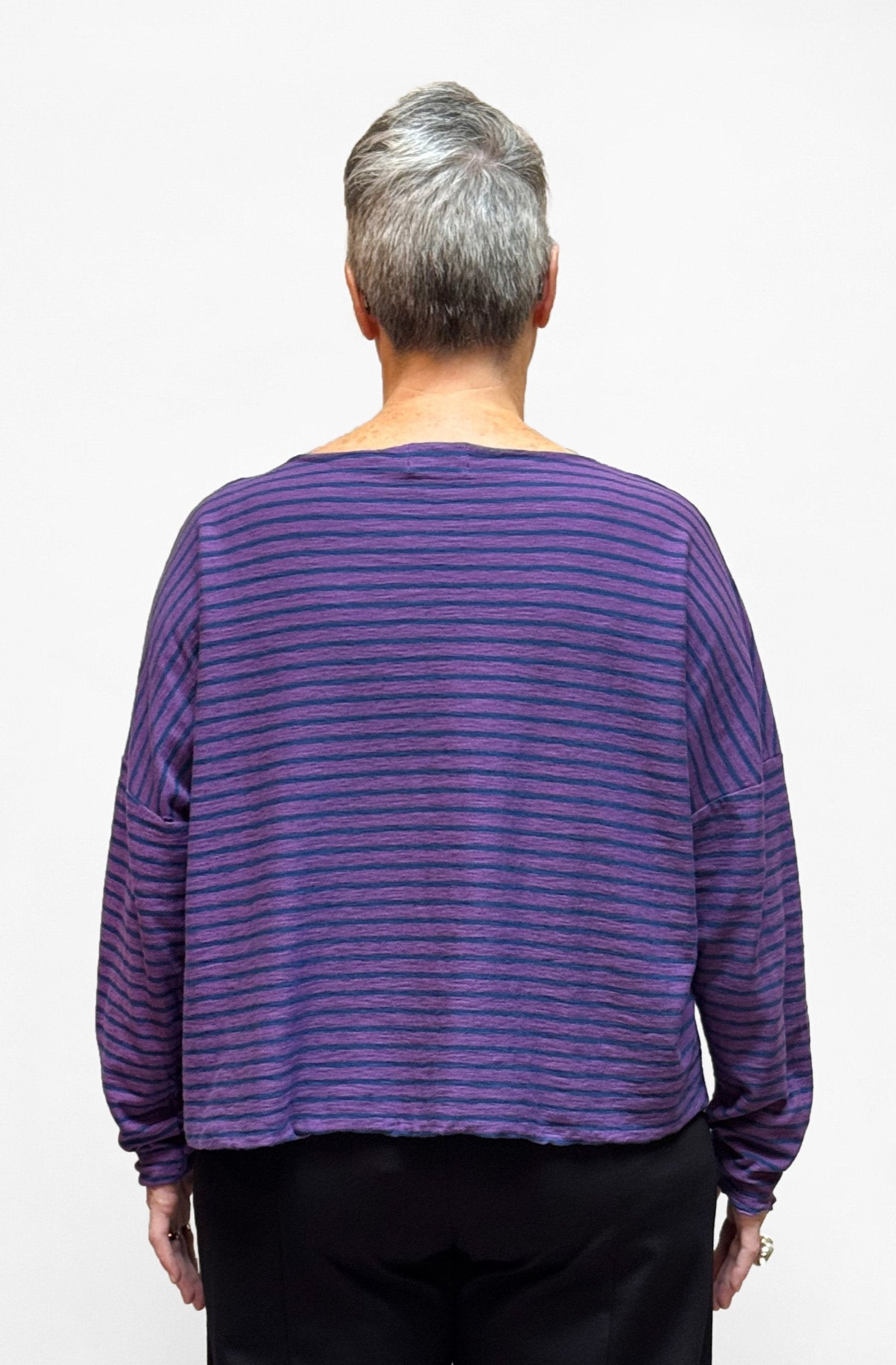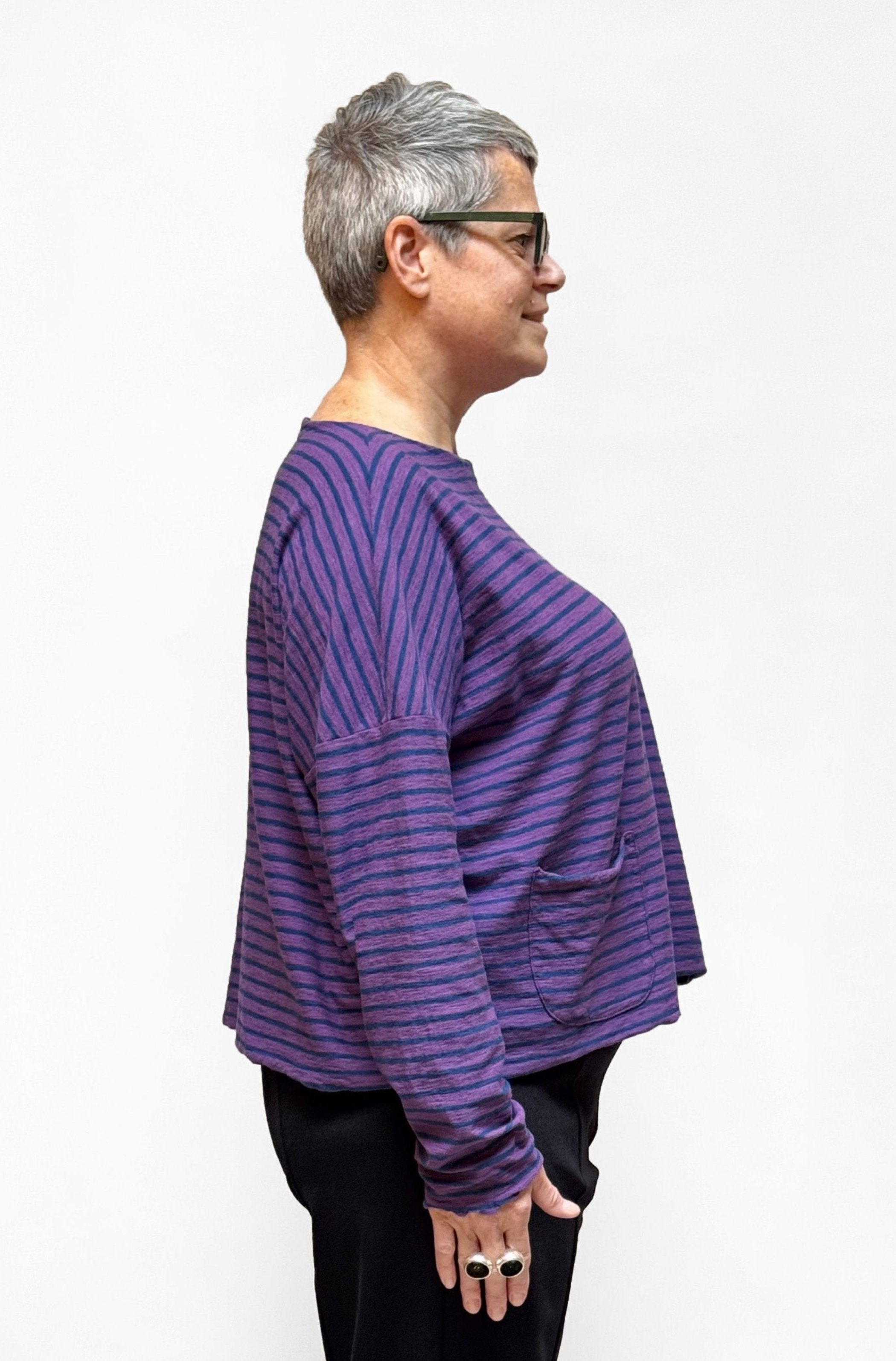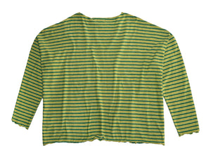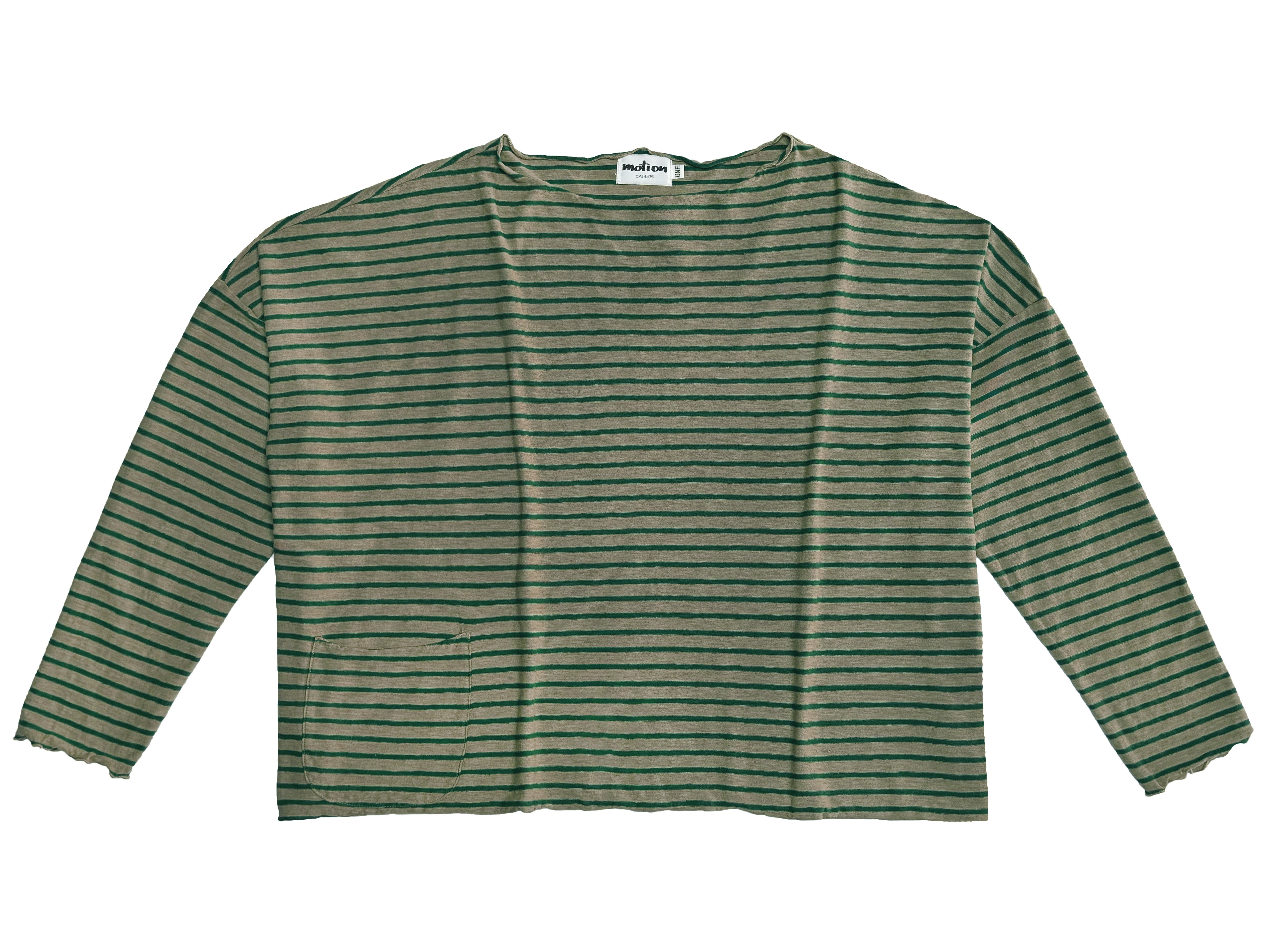This top has a boxy and relaxed fit, crafted from a comfortable cotton-linen blend knit. The classic blue stripe design is accentuated by the contrast-coloured background, which comes in a variety of options. It features serged edges that naturally roll over, full length sleeves and a pocket at the front.