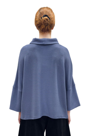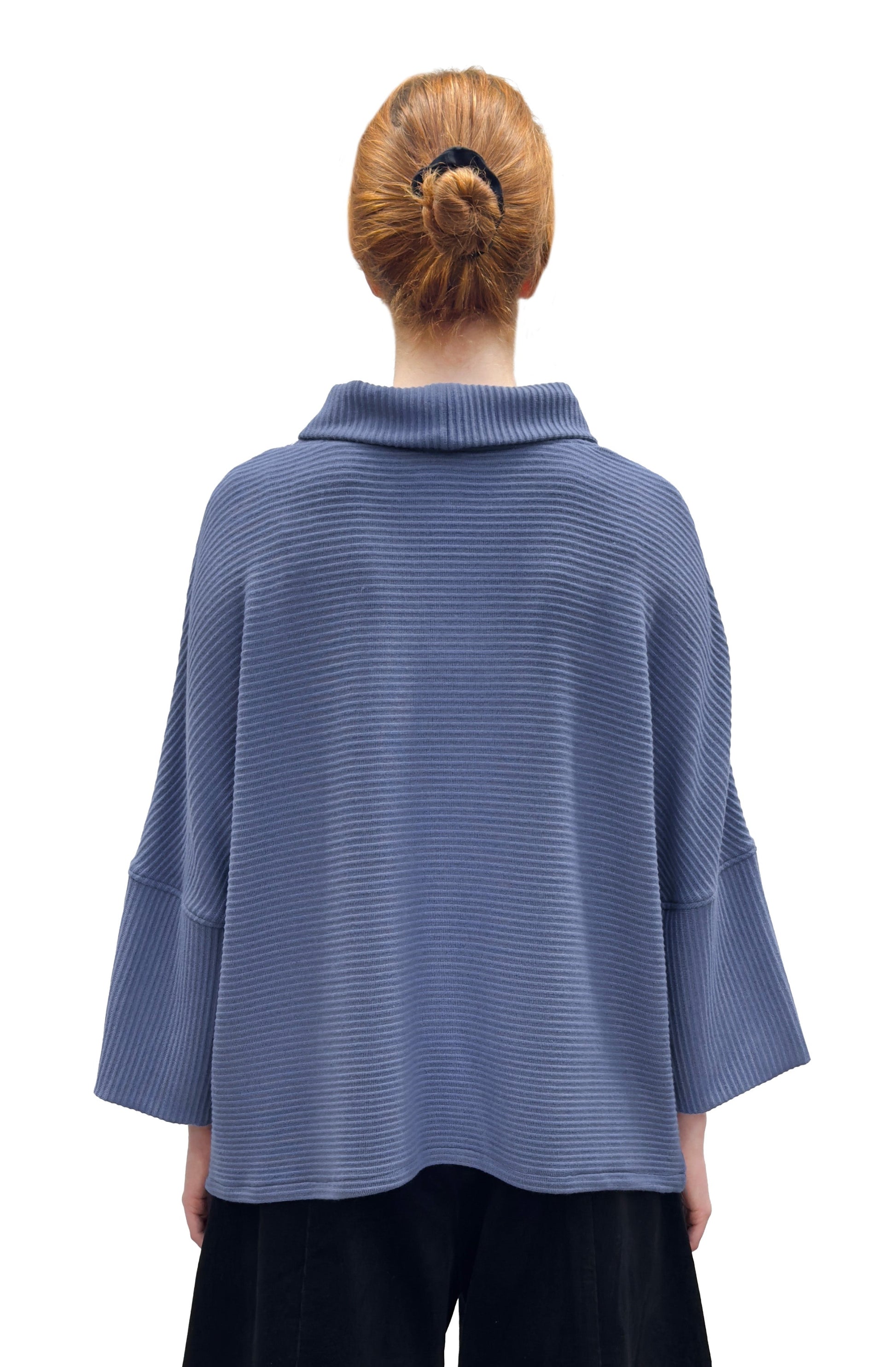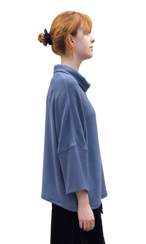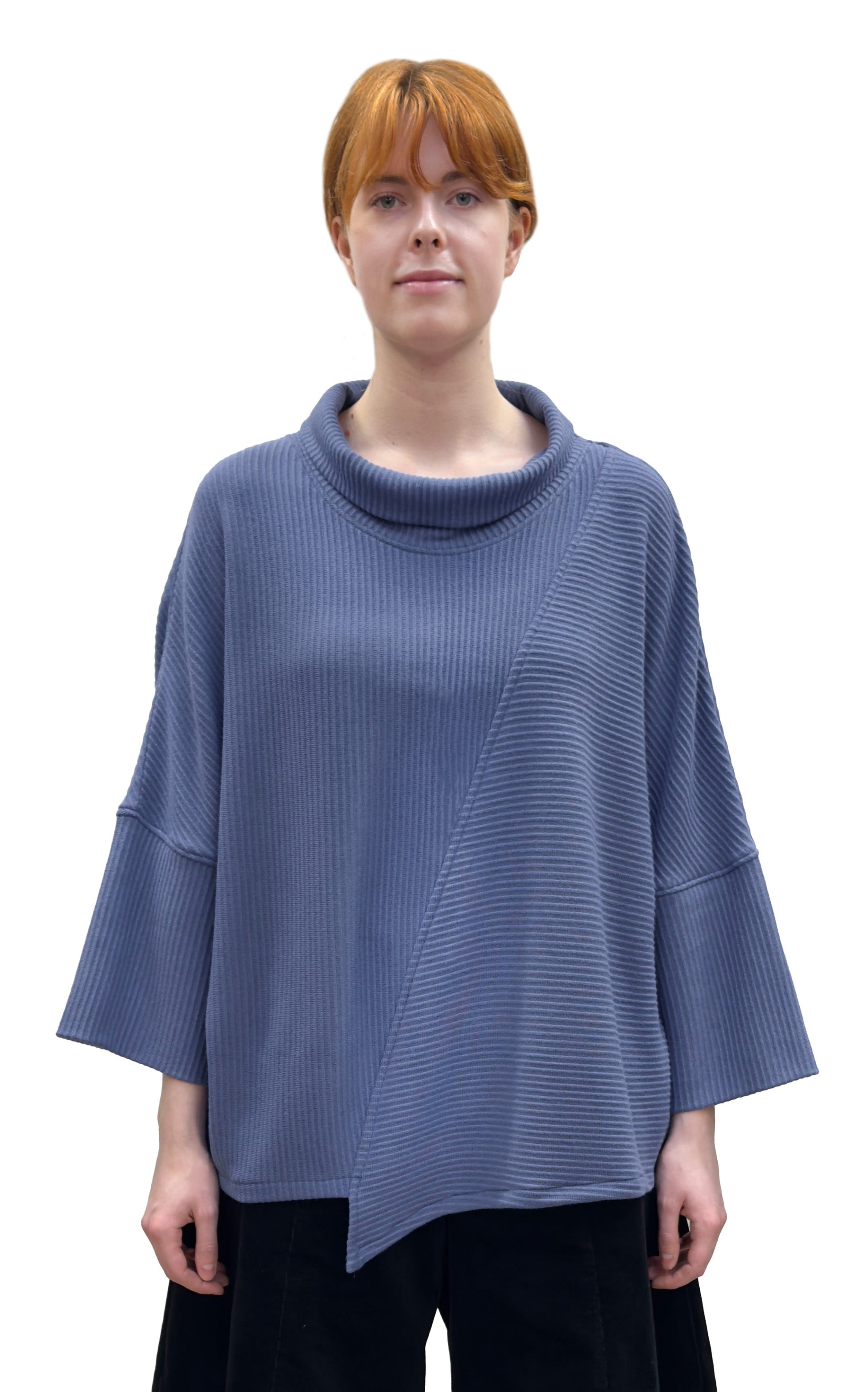 Motion Asymmetric Cowl Neck Topper in Cornflower Blue