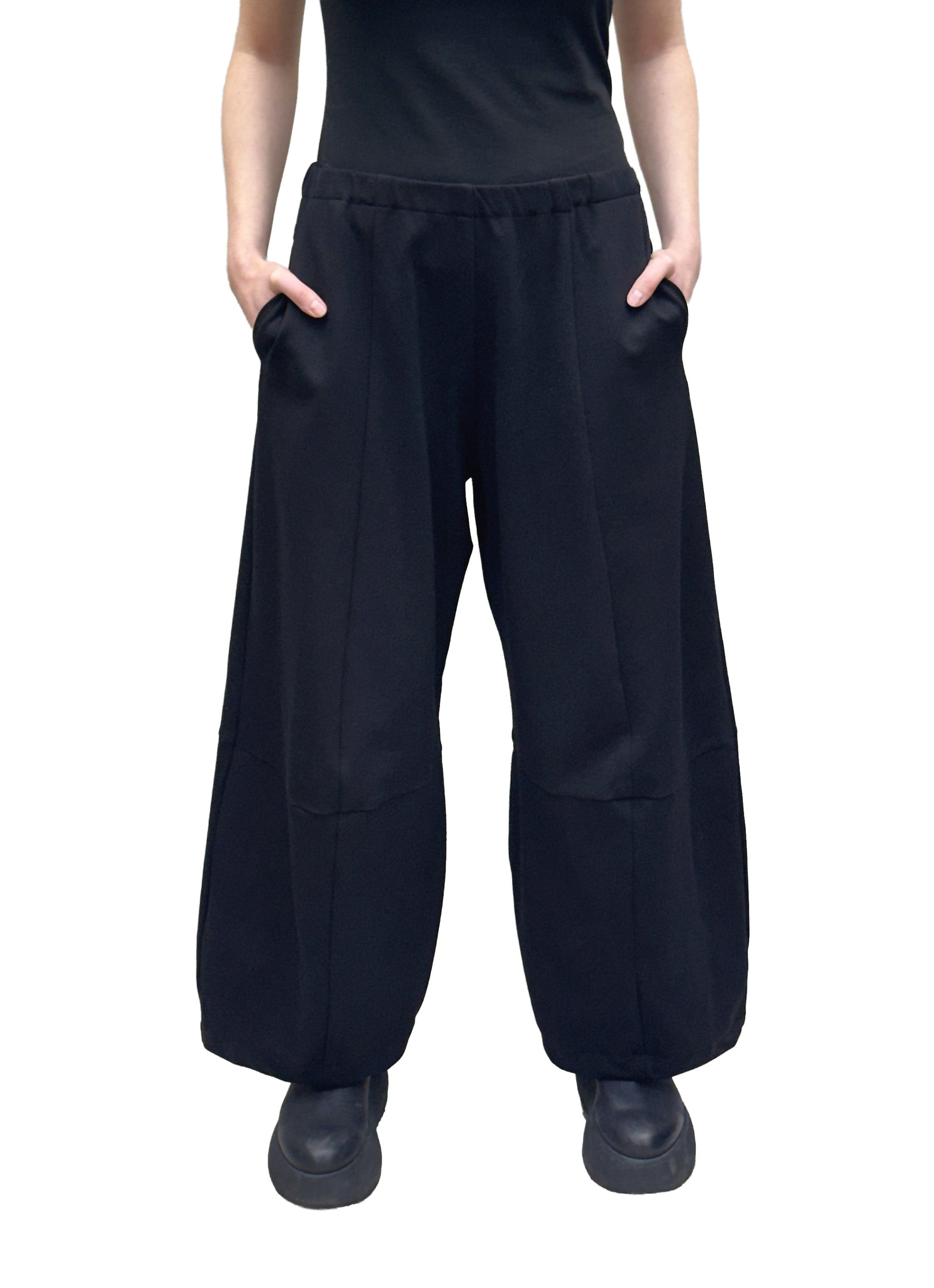 Classic Motion bubble pants. A comfy and essential piece, with a soft elastic waistband and deep pockets. It falls just below ankle-length, and sits 1/2" shorter at the front.