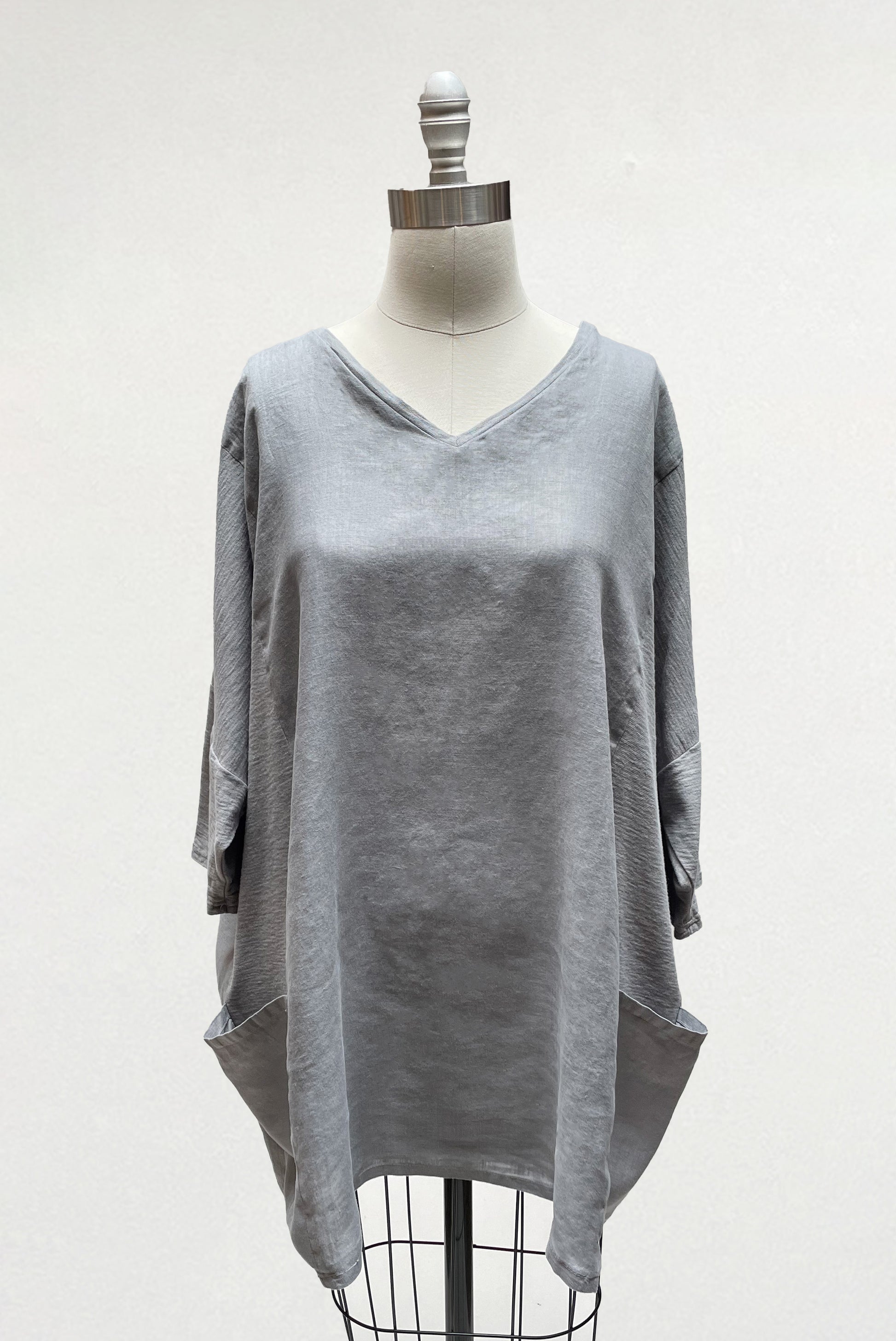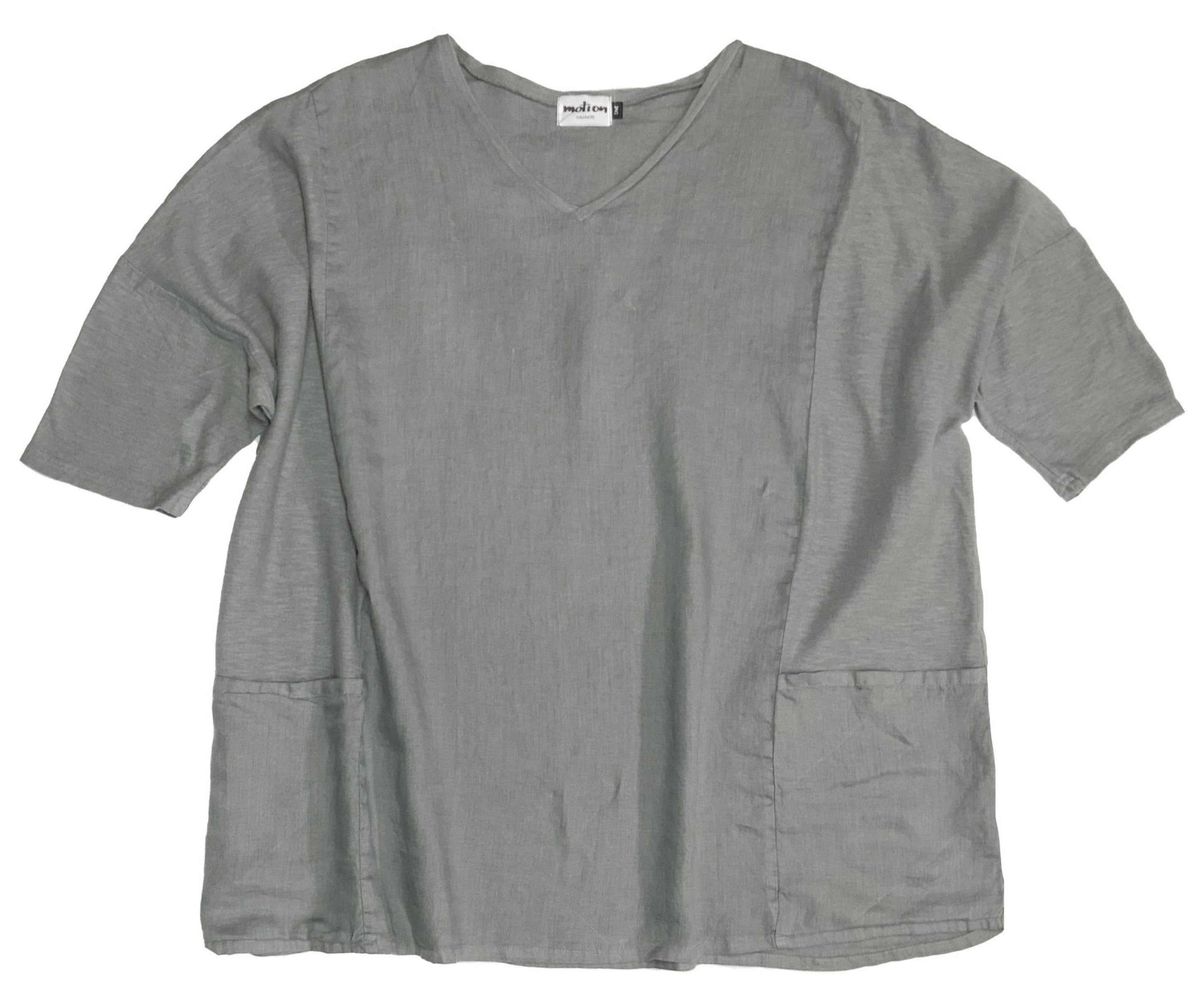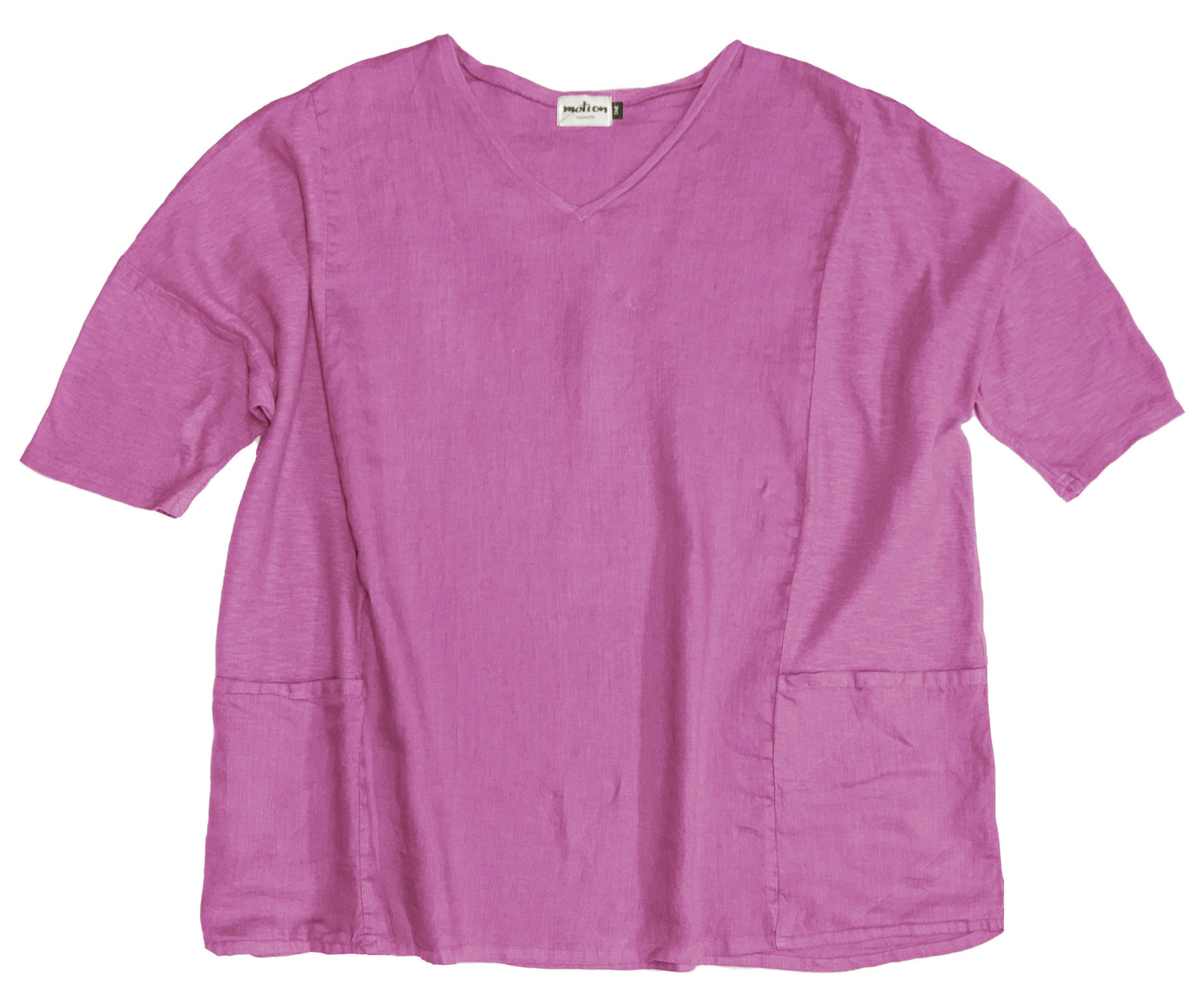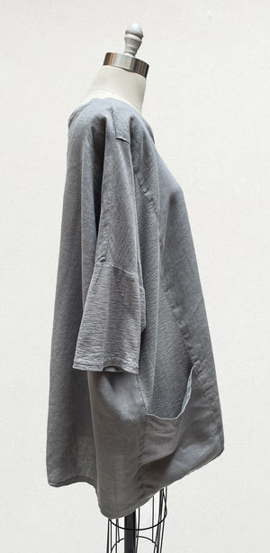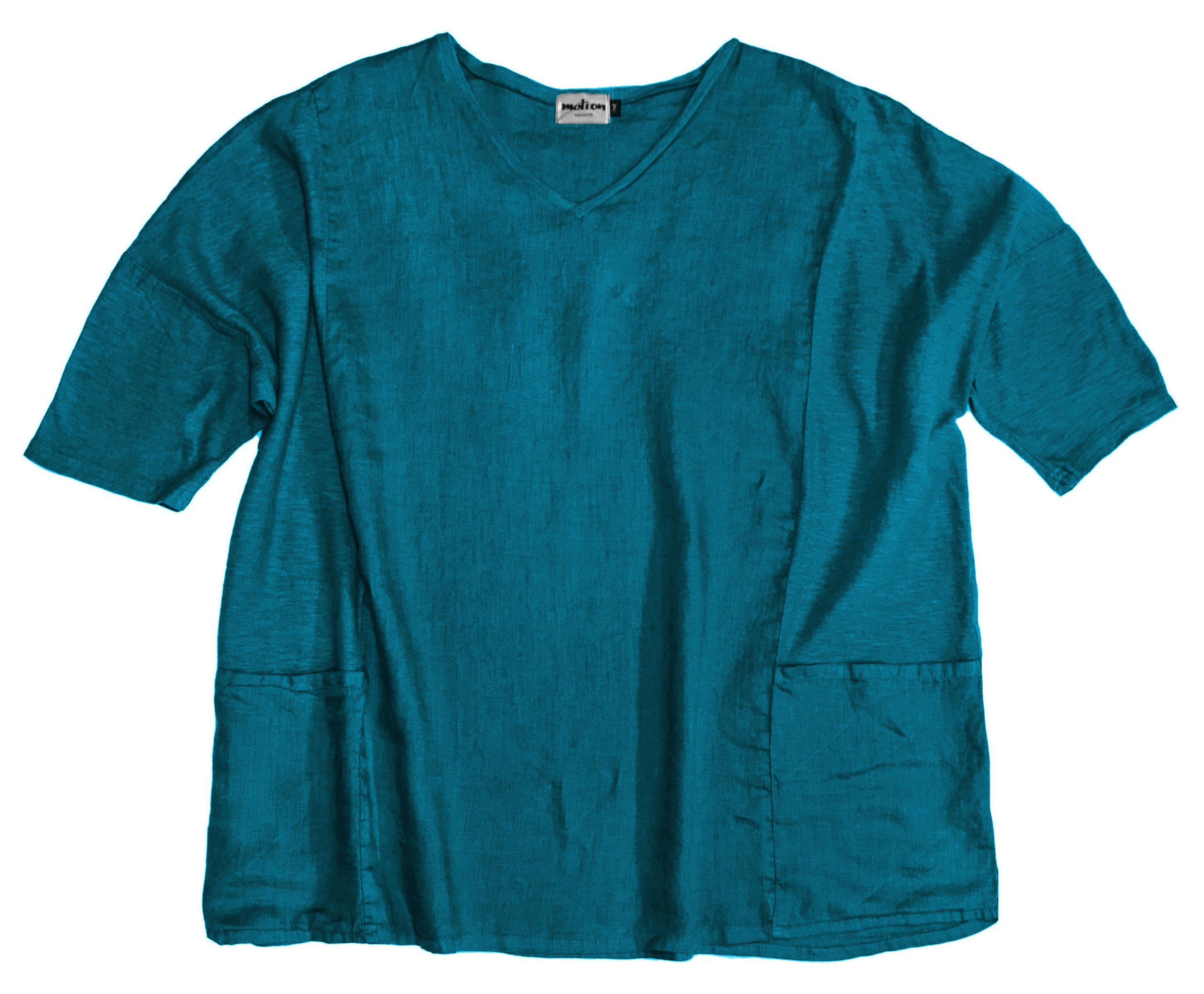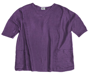 This timeless linen combo onesize v-neck top is the ultimate summer staple. It is made with hanky linen and lightweight cotton/linen knit fabrics for an effortless look. Plus, you'll love the two patch pockets for extra convenience. The best part: it's easy-care and cool, so you'll be wearing it all season long.