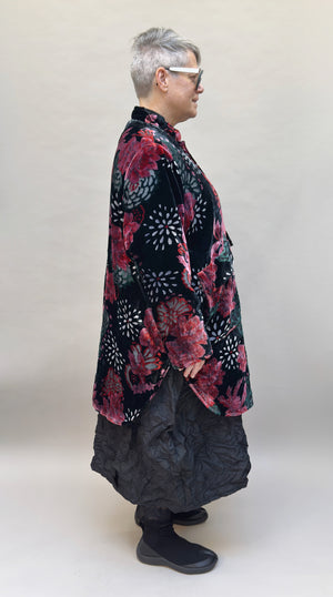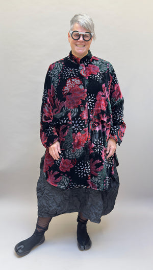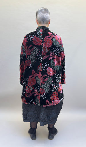 MOTION Long Onesize Velvet Coat in Floral Pattern