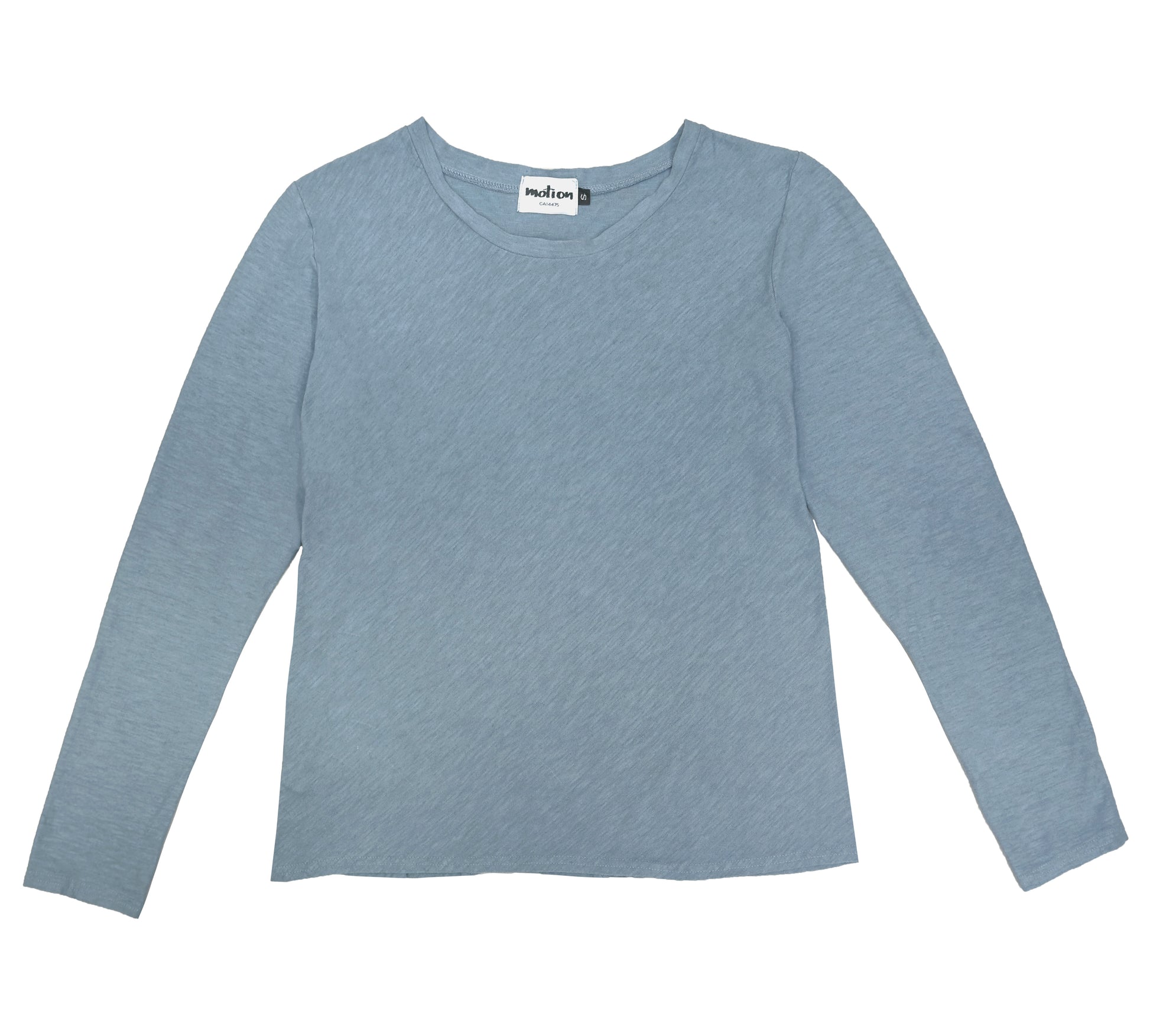 This tee is crafted from a cotton and linen blend, featuring a closer fitting cut with a soft A-line silhouette and a flattering round neck. It has long, set-in sleeves that are slim fitting. The side seams are slanted and end at the lower back which add a flattering touch. An essential piece.