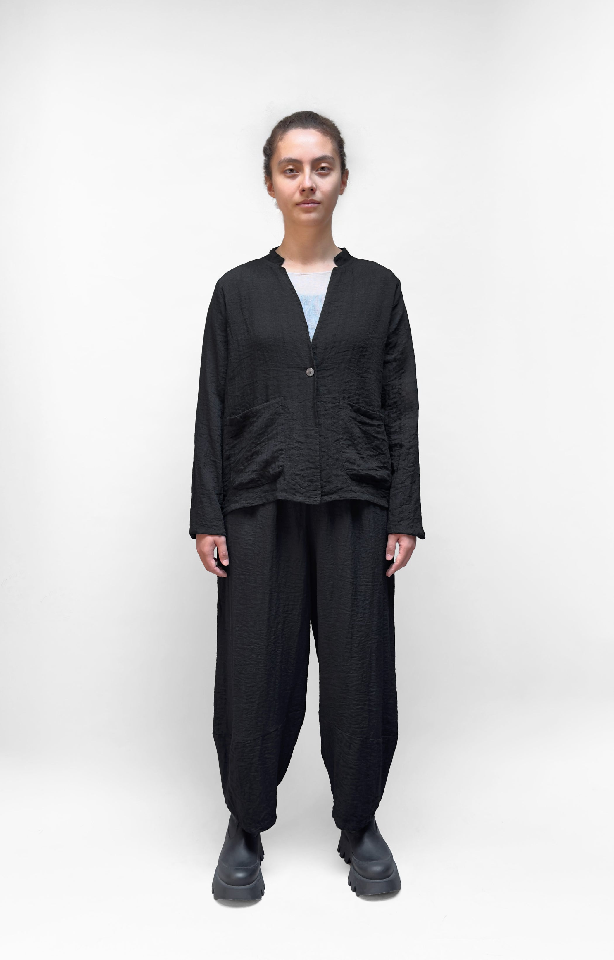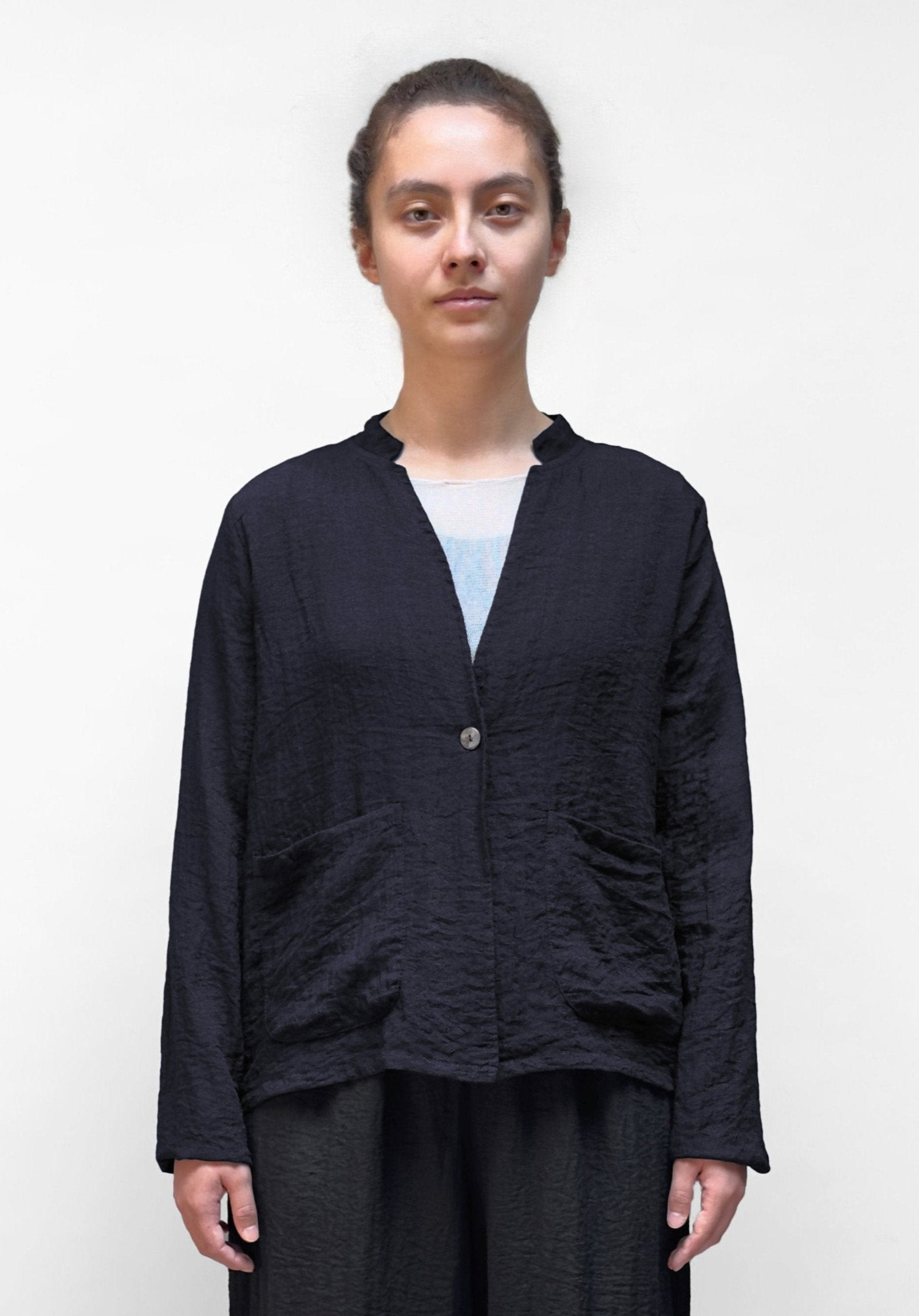 The MOTION one button jacket is the perfect blend of simplicity and style. With a one button closure, stand-up collar and two front pockets, this jacket is both comfortable and functional. It has long sleeves for extra coverage on breezy days. The classic look of this jacket is perfect for any occasion.