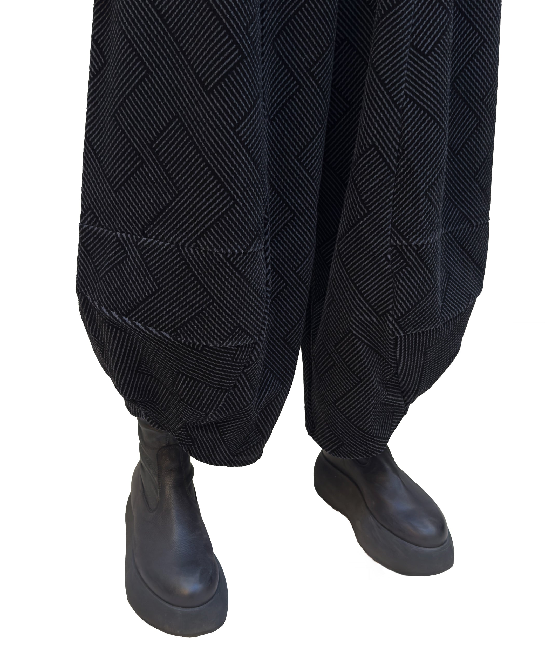 MOTION Velvet Barrel Leg Pant in Maze Pattern