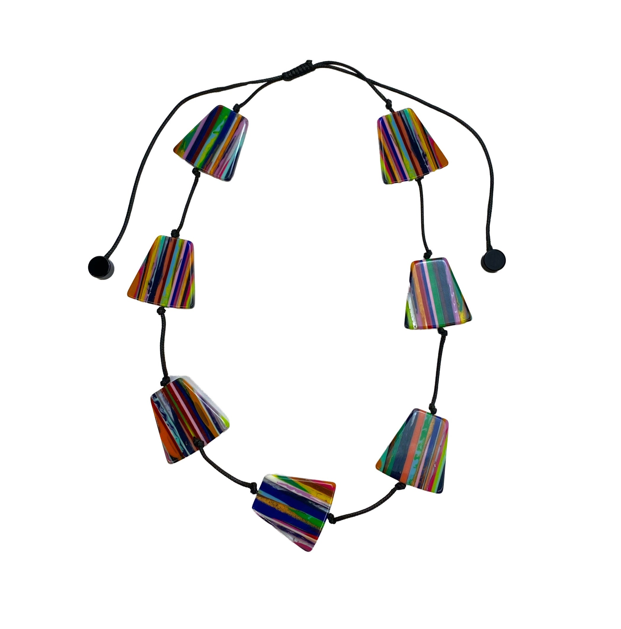 Multi-Coloured Striped Flat Resin Bead Necklace