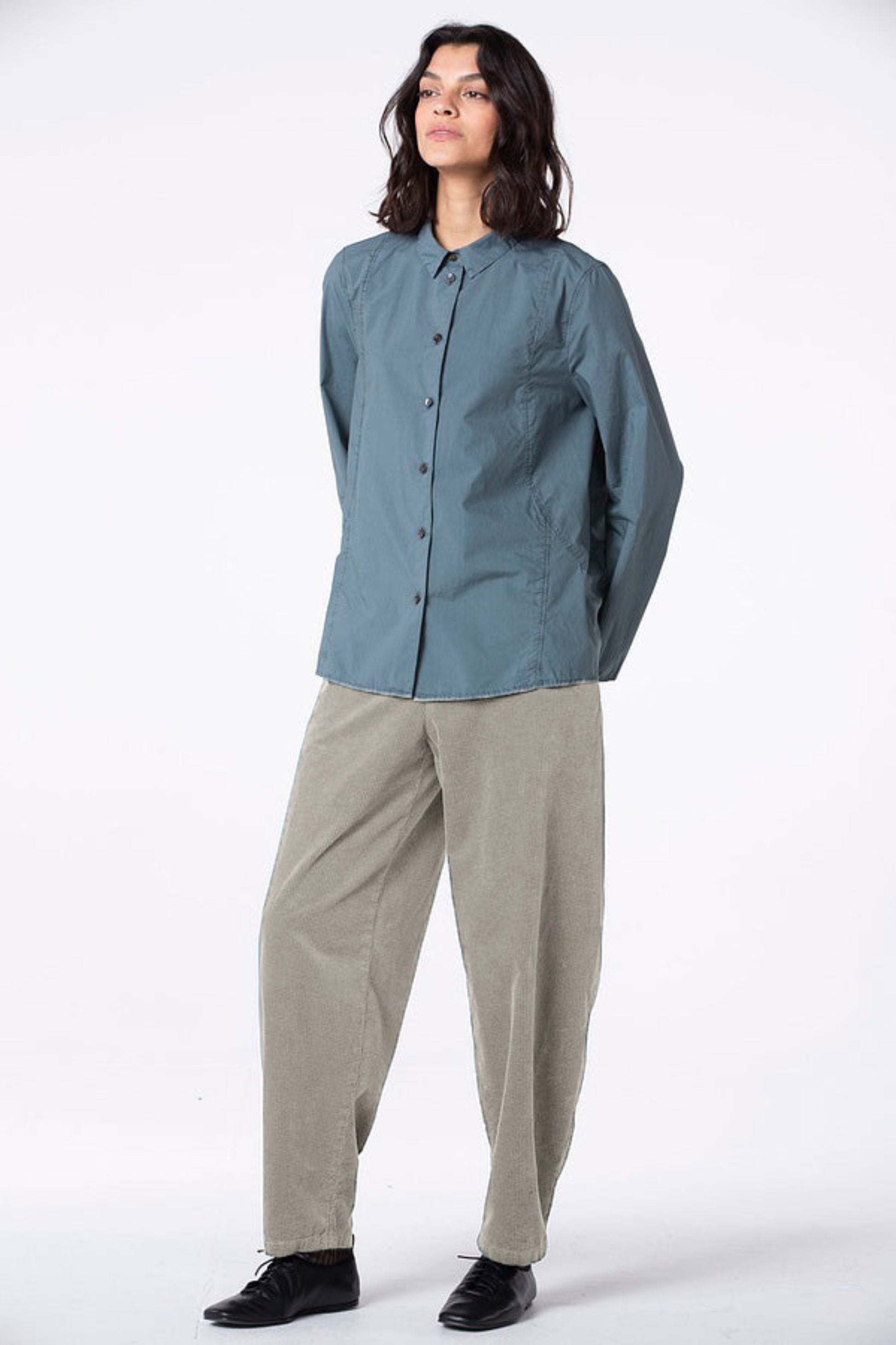 These Oska trousers are fashioned in a soft cotton corduroy fabric with a side zipper, and a curved barrel leg design for a flattering silhouette that falls to ankle-length. It features straight front pockets, and a flat front and an elasticized waistband at the back for a comfortable fit. You can roll them up or down for a change in look.
