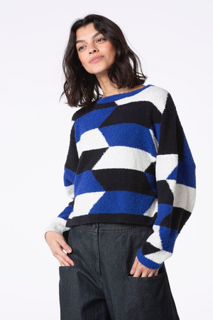 OSKA Relaxed Cropped Sweater in Clematis Pattern