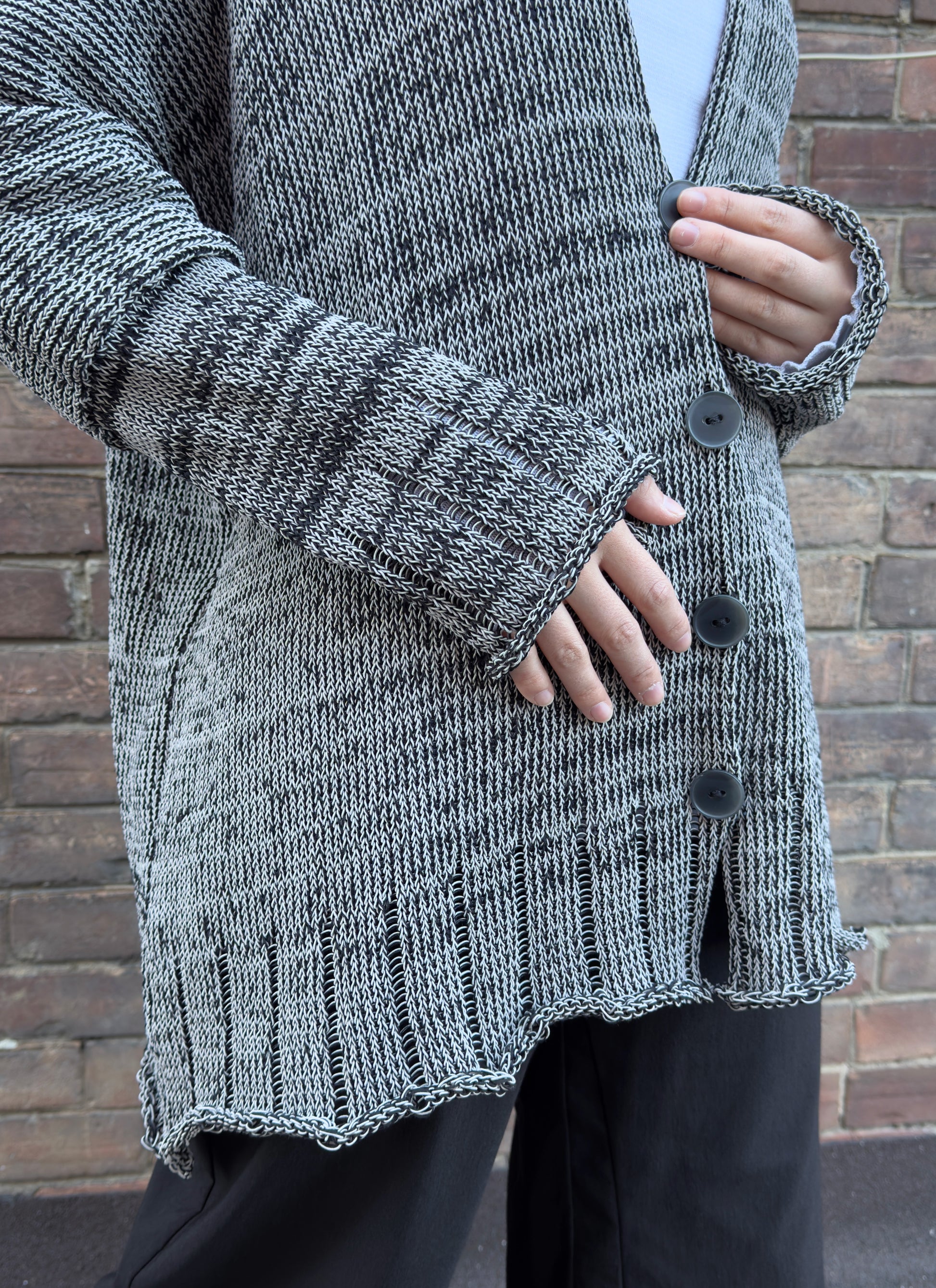 Paper Temples Relaxed V-Neck Cardigan in Obsidian