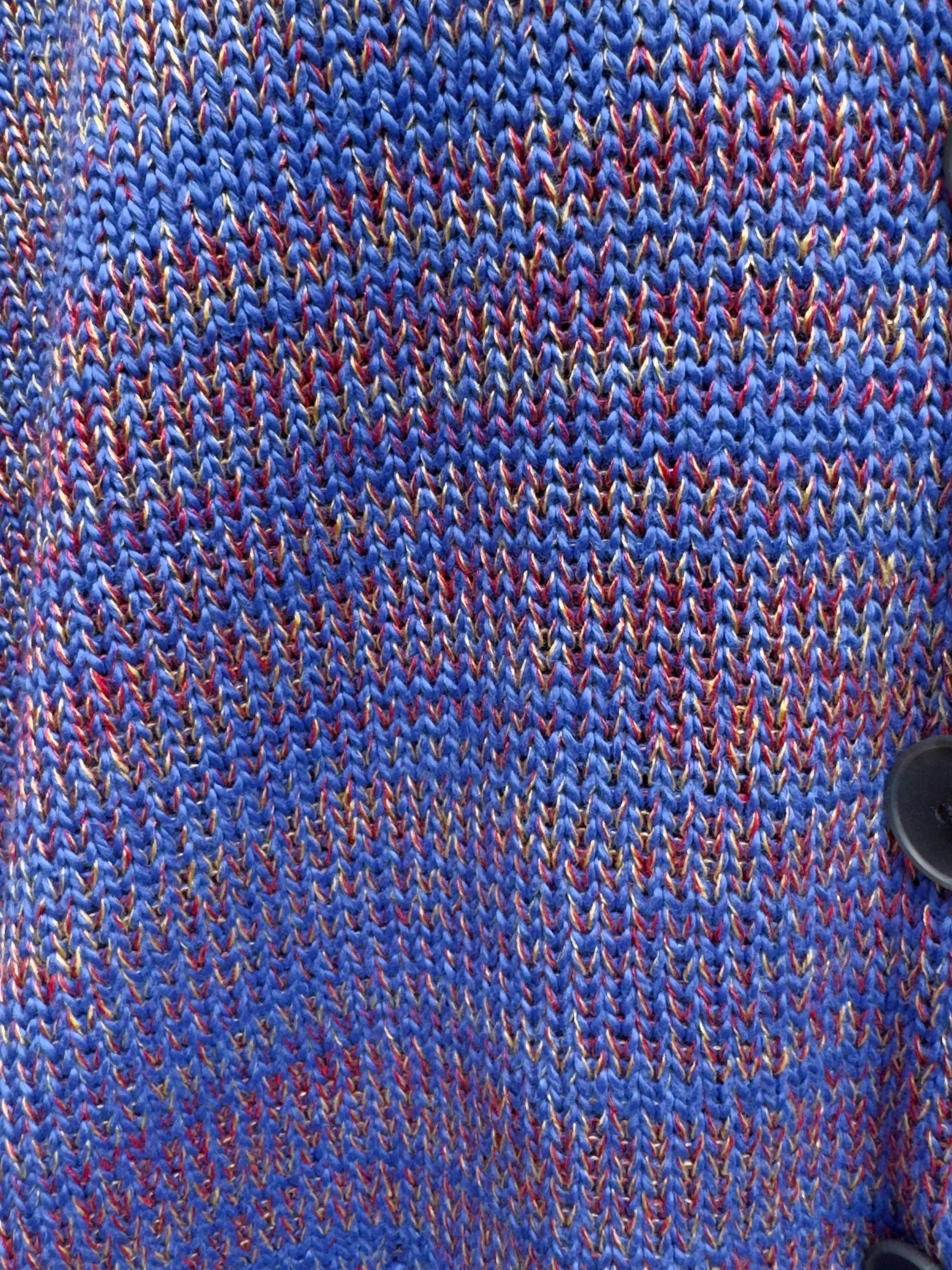This cardigan has a relaxed knit with lots of give, and a generous fit. It buttons in front and has a V-neck with a slight roll. It has dropped shoulders and long sleeves for comfort. It features ribbing along the hem and cuffs.