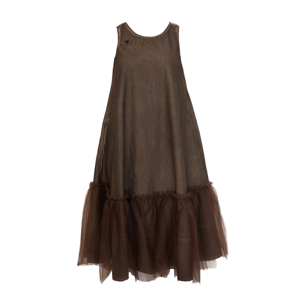 PLU Washed Cotton Dress with Tulle Flounce in Chocolate