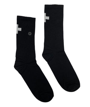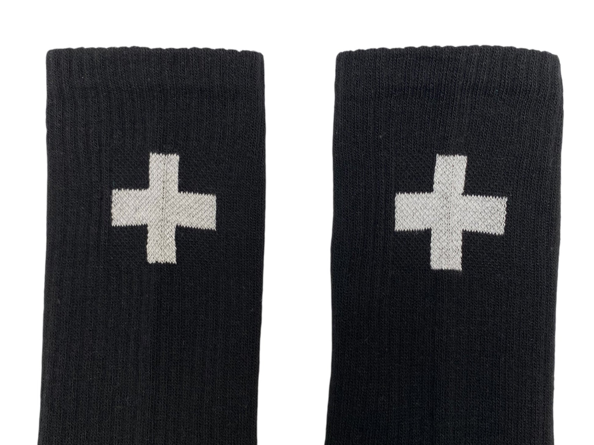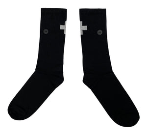 Classic comfy crew socks featuring PLU’s logo monogrammed in white and their signature button detail. Made from soft, stretchy, breathable cotton with ribbing around the ankle for added comfort and mobility. Perfect for styling with boots for cooler weather.