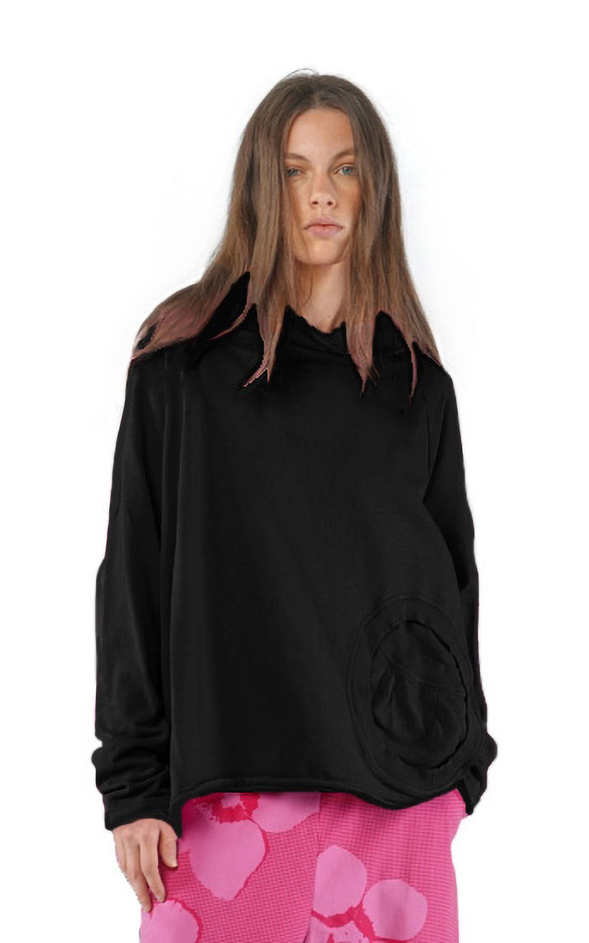 A relaxed french-terry pullover from Rundholz Black Label featuring a funky circular in-set pocket at the front. It offers raglan sleeves, a boxy silhouette that slightly curves out and falls just below the hips. An easy and fun piece!