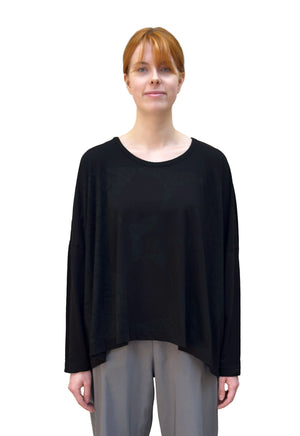 A bold floral print tee featuring a boxy oversized fit and drop sleeves. The cut of this top creates a flowy silhouette that falls just below hip length. A must have statement piece! The dark graphic on the black fabric makes for a more subtle floral statement.