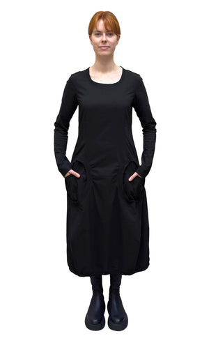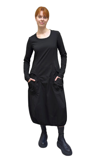 RUNDHOLZ BLACK LABEL Long Sleeve Pocketed Bubble Dress in Black