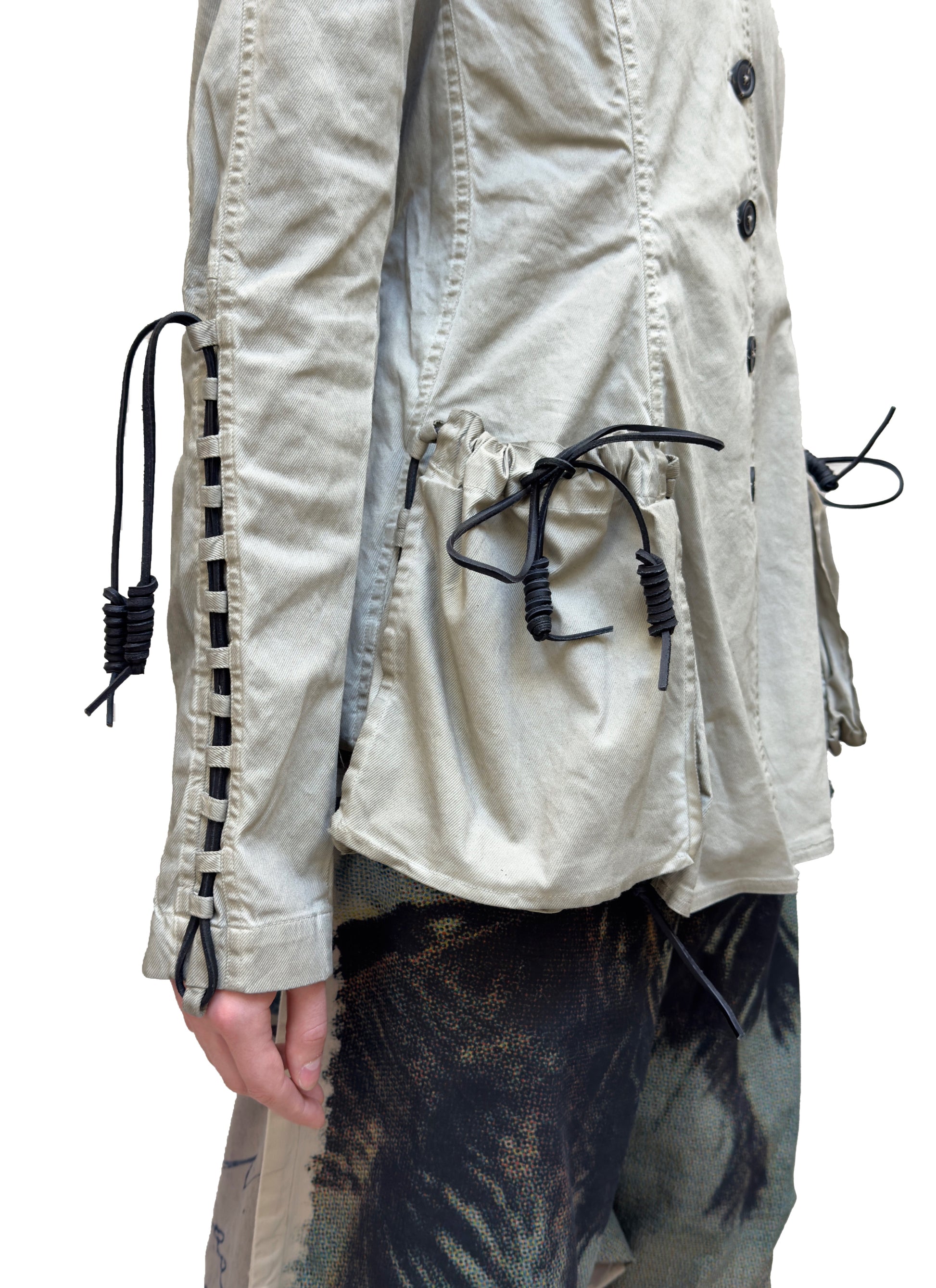 RUNDHOLZ DIP Lace Up Cargo Jacket in Sand Cloud