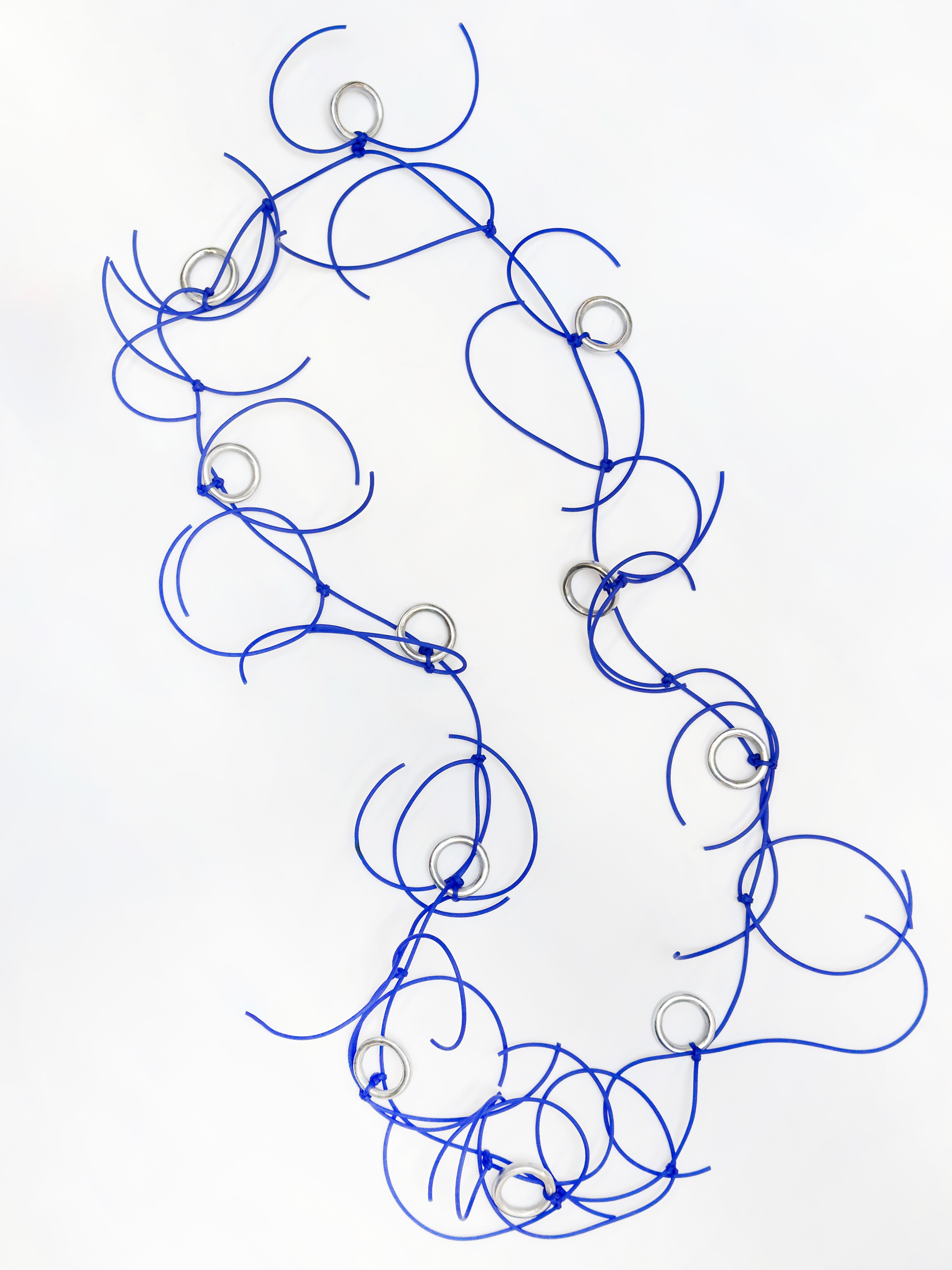 SAMUEL CORAUX Metal Rings and Blue Plastic Cord Necklace