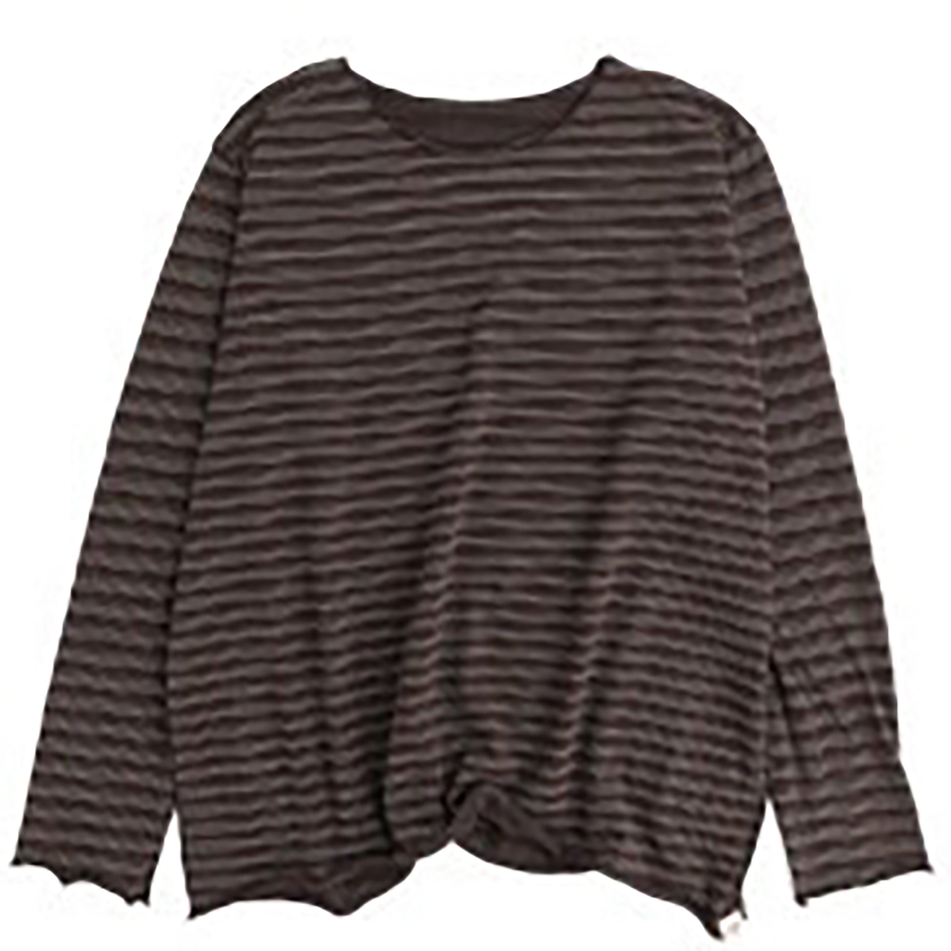 A relaxed tee with long sleeves, a round neck and serged seams. This tee is one-of-a-kind and can be worn inside out.
