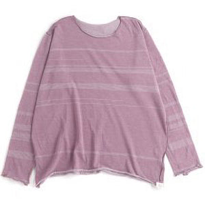 A relaxed tee with long sleeves, a round neck and serged seams. This tee is one-of-a-kind and can be worn inside out.