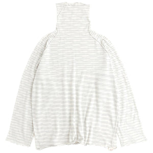 Relaxed knit turtleneck with baby-serged seams and raw edges, made from a soft 100% cotton knit. The raglan sleeves are full-length. Each tee is one-of-a-kind and come in one size.
