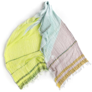 Wrap yourself in colour with a medium-sized and printed Tamaki Niime cotton scarf. Each scarf features a one-of-a-kind print.