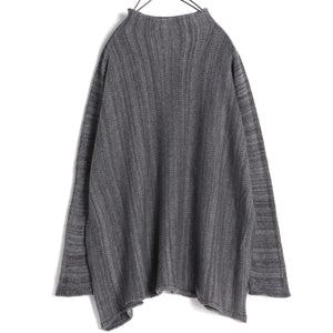A relaxed boxy knit pullover sweater with drop shoulders, and long sleeves with ribbed cuffs. Featuring a unique design which allows the garment to be worn front-to-back. A perfect lightweight sweater for the transitional weather and for layering in the colder months.